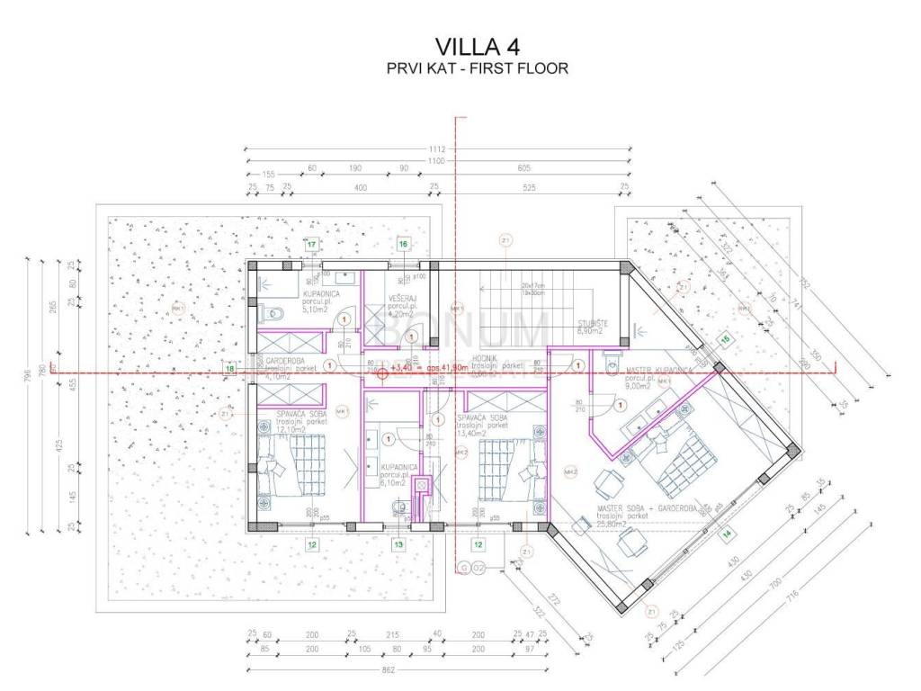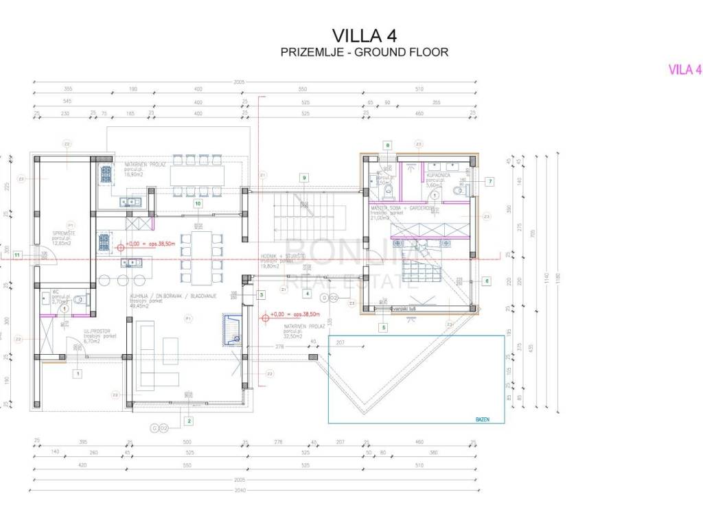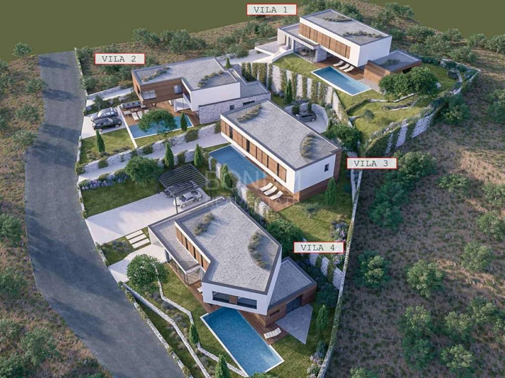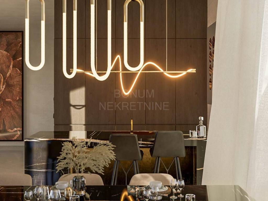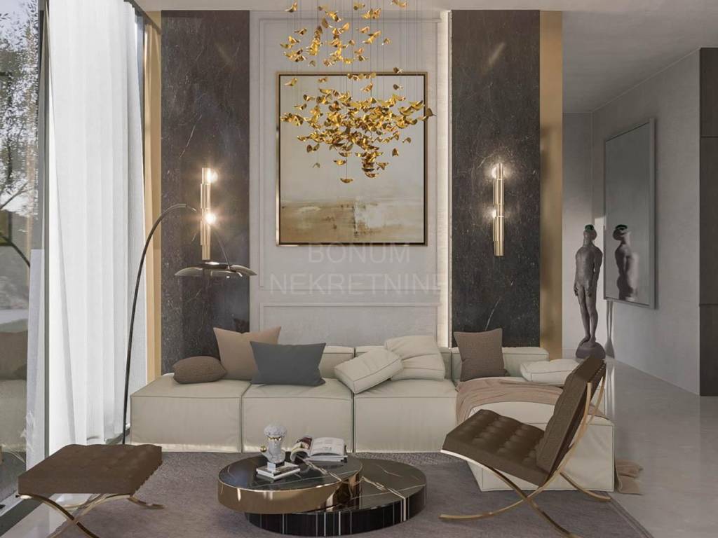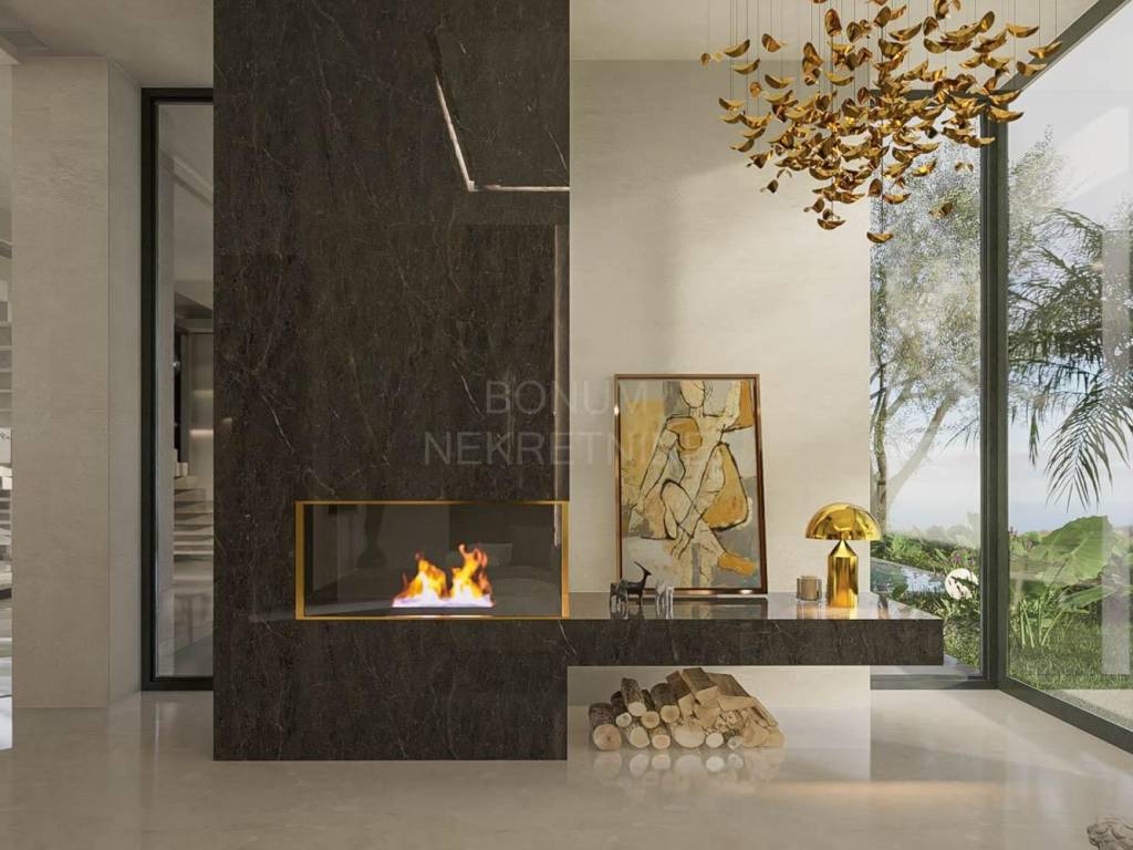 The house was built with a combination of concrete and brick with load-bearing walls 25 cm thick. The exterior joinery is aluminum with high-quality glass, and the floors are covered with luxury ceramics and parquet. The villa is fully air-conditioned with a multi-split system and uses a heat pump for heating and preparation of hot water. In addition, the implementation of lighting automation (SmartHome) and preparation for sound system with built-in speakers is also planned.