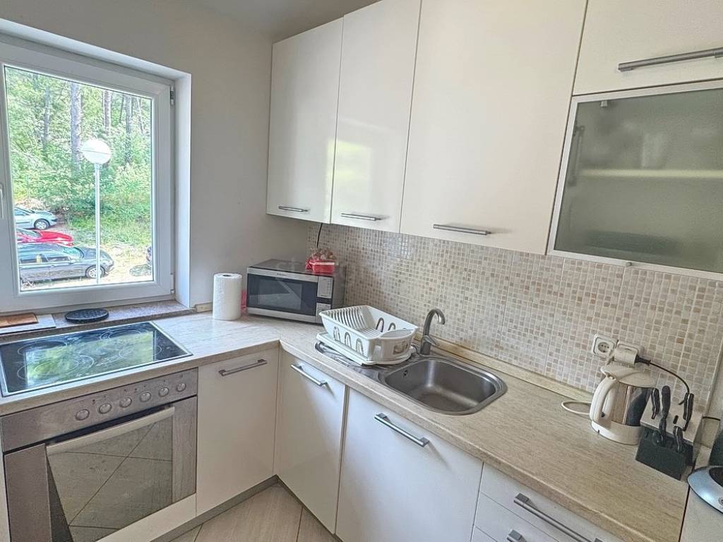 The total area of the apartment is 59 m², comprising a spacious living room connected to the kitchen and dining area, two bedrooms, a bathroom, and a covered terrace ideal for relaxation. The interior spaces are exceptionally tidy and well-maintained, fully equipped with quality furniture and modern appliances, allowing immediate occupancy without any additional investment.
