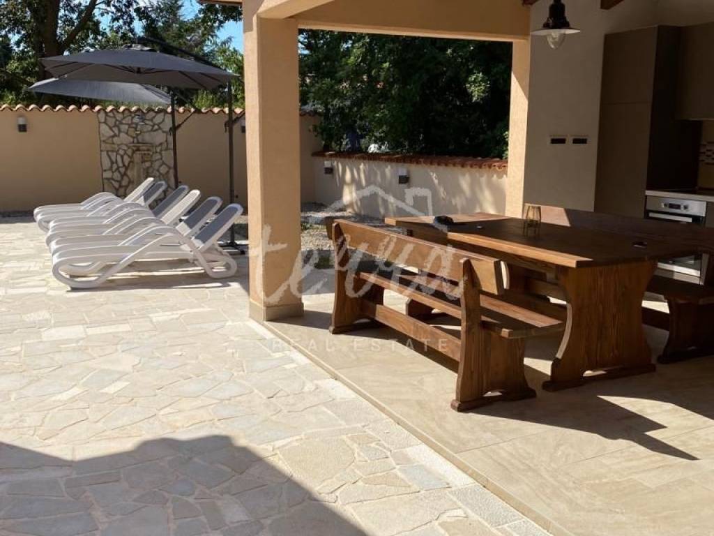 From the living room there is an exit to a covered terrace, where there is a fully equipped summer kitchen.