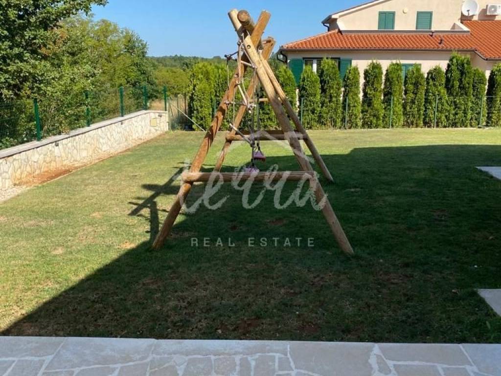 On the fenced and landscaped garden there is a swimming pool with a sunbathing area, a children's playground, and several parking spaces.