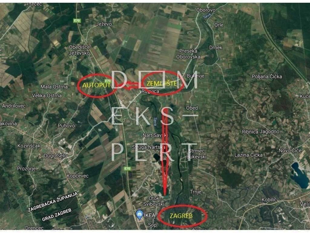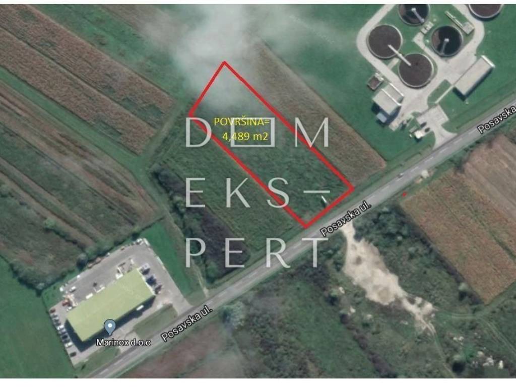 Prodaje se građevno zemljište s gotovim projektom za gradnju skladišta neprehrambenih proizvoda. Zemljište ima oblik pravokutnika dužine uz cestu 43 metra i 100 metara u dubinu, ukupne kvadrature 4.489 m2. Teren je pretežito ravan.