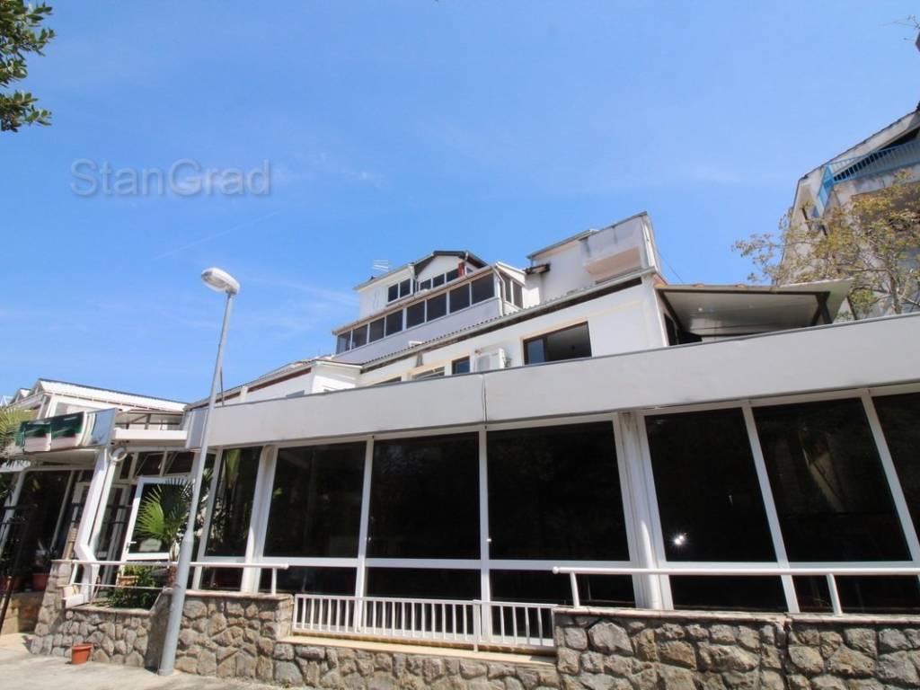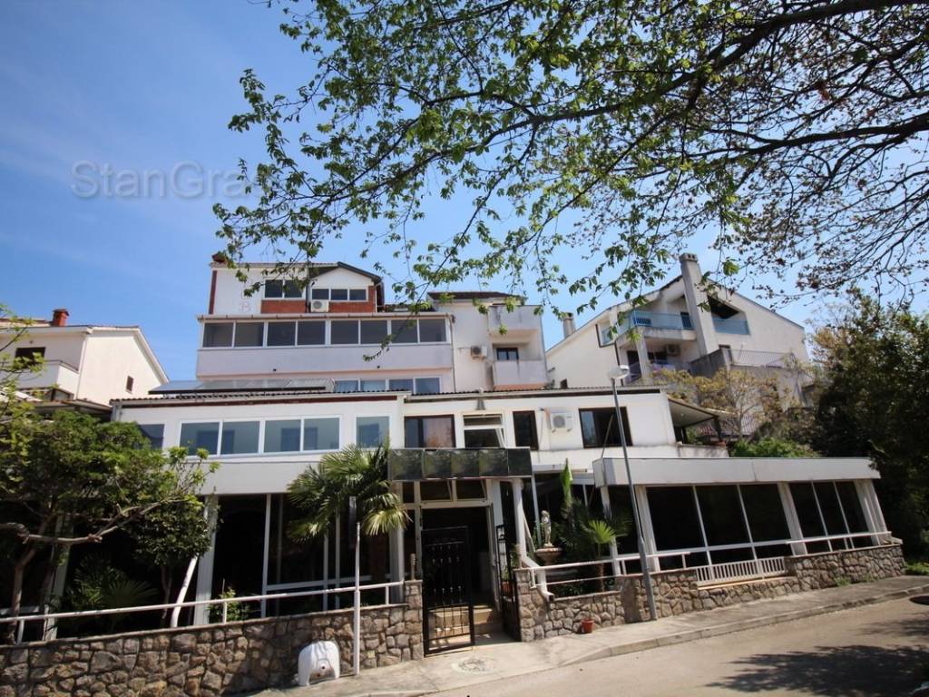 U dobroj ponudi nekretnina agencije Stan Grad Immobilien nalazi se super atraktivna poslovna nekretnina u regiji otok Krk. Ova privlačna nekretnina se nalazi na izvanrednoj lokaciji blizu centra poznatog turističkog mjesta Malinska. Vrlo dobar i kvalitetan objekt je satkan od 5 etaža. Nekretnina obuhvaća ukupnu površinu od 1.080 m2. Unutar navedene površine su 7 apartmana, restoran, podrum i spremište. Navedeni objekat ima lift, solarno, centralno grijanje, klimu, alu stolariju. Kuća je okružena manjim, dobro uređenim dvorištem. Na spomenutoj okućnici nekretnine može se komforno parkirati više automobila. Uz prethodne značajke, treba naglasiti da nekretnina ima i solidan pogled na more. Ova nekretnina je u vlasništvu fizičke osobe. Prodavatelj garantira uredne dokumente i promptan prijenos vlasništva kuće na kupca. Posrednički ured Stan Grad će vam pomoći prilikom prijenosa vlasništva nekretnine i komunalnih priključaka.