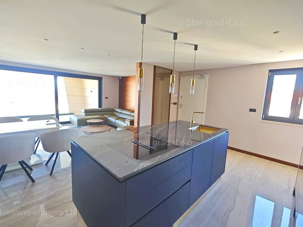 At Stan Grad Immobilien, an exceptional apartment built to a modern design is for sale in the attractive northern Adriatic area of the island of Krk. This apartment is located in an excellent and rarely available spot, just a short walk from the sea and the center of Malinska, as well as key amenities.