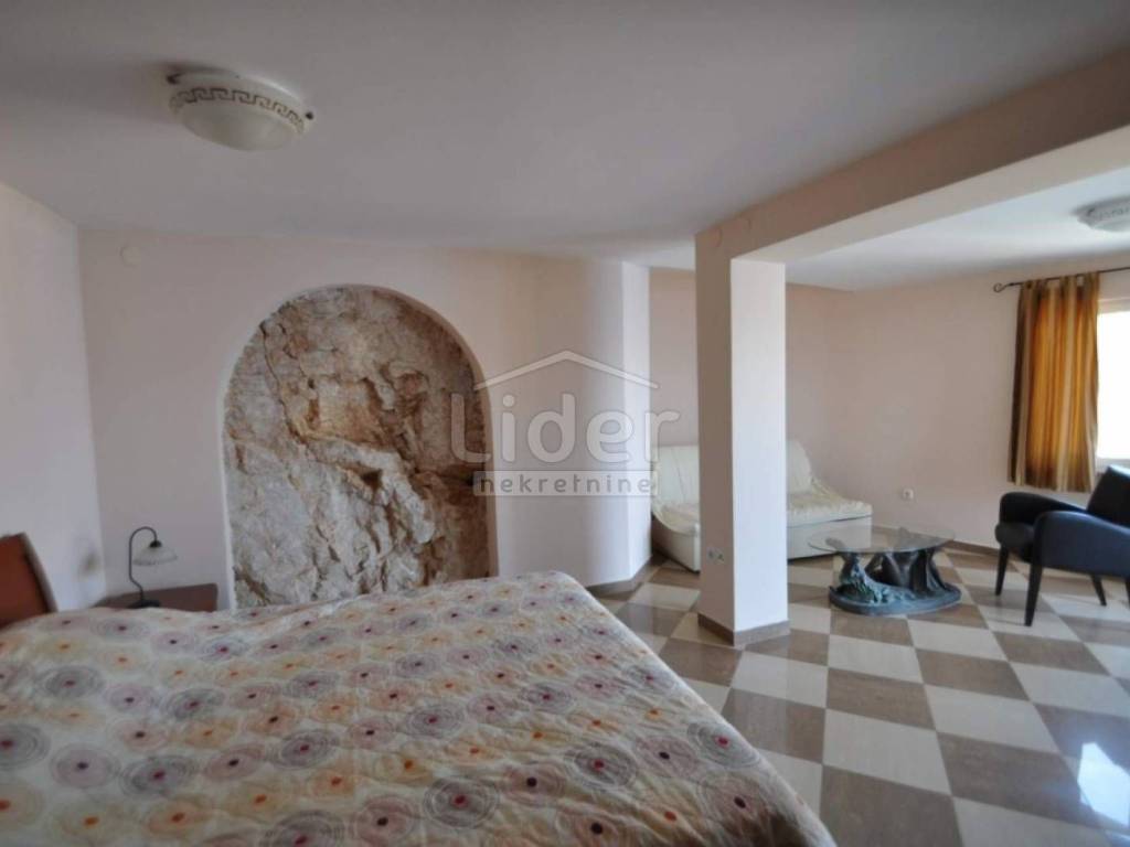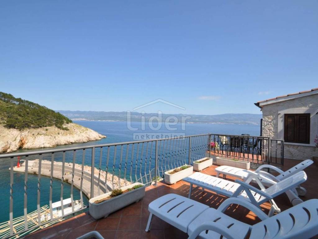 Vrbnik, a house on a cliff above the sea with a view of the bay and the open sea. The house has been completely renovated and turned into a luxurious villa carved into the rock, with its own stairs leading to the sea. The land on which the house is located is sloping towards the sea, so the house was built in a cascade, and consists of three rooms, three bathrooms, a kitchen, a dining room, and a beautiful terrace. The house is categorized for tourist rental.