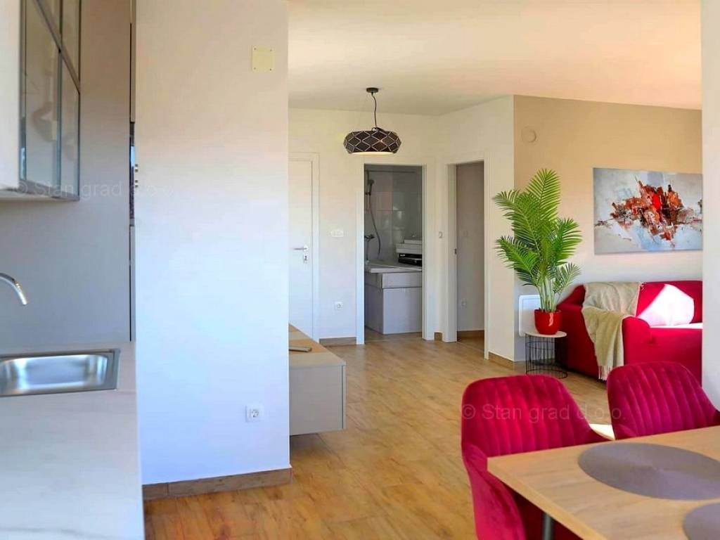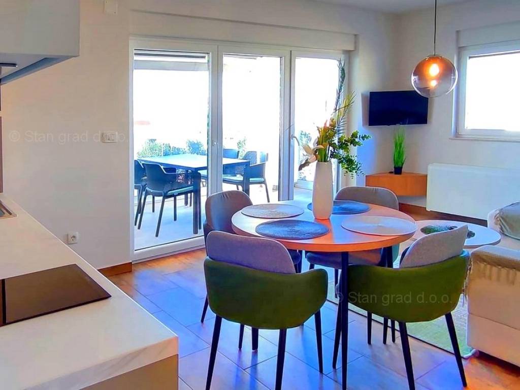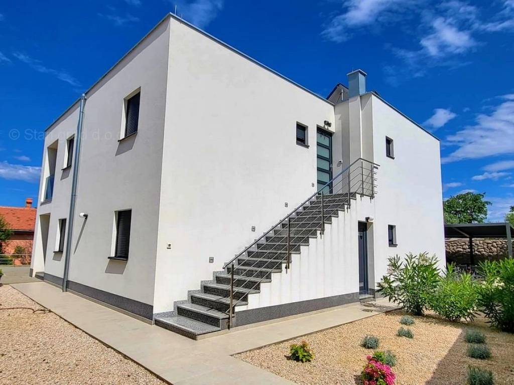 The Stan Grad Immobilien agency in the Kvarner region is offering an exceptional Mediterranean urban house built according to a modern design in the developed and attractive northern Adriatic area of the island of Krk. This affordable house is located near the well-known town of Malinska, in a green area free from city noise.