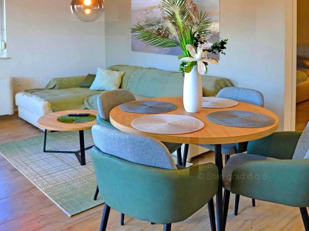 Structurally, this is a detached two-story house with a basement. The beautifully arranged house consists of a total of 2 spacious levels. The total area covered by this house is 290 m². The house contains four separate apartments. Each of the four apartments has a living room, kitchen with dining area, one bedroom, bathroom, and terrace. The exceptionally maintained interior of the property is excellently equipped with luxurious and high-quality furniture, as well as modern technical equipment.