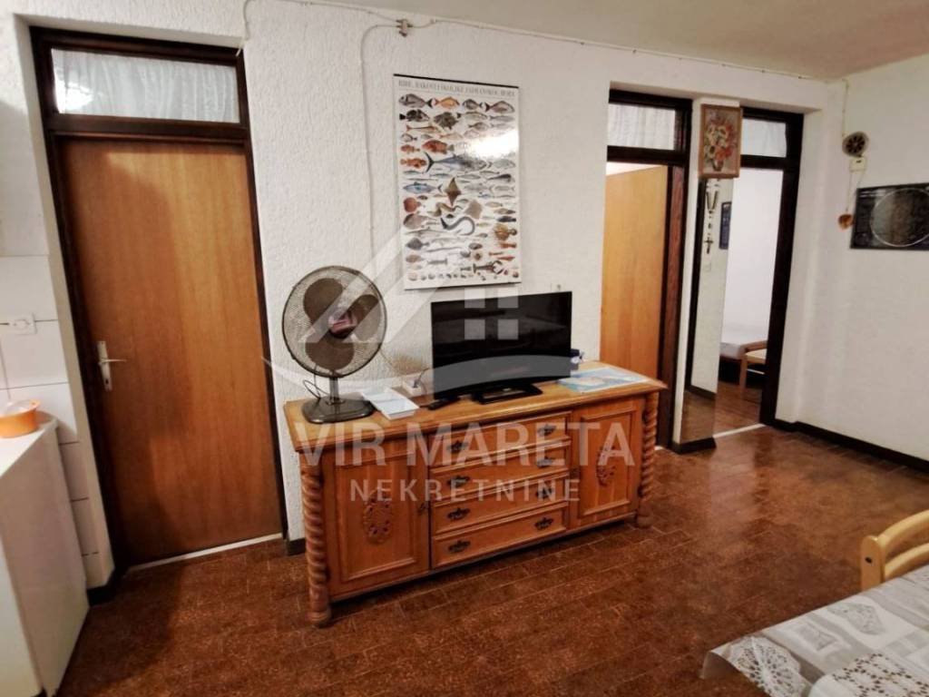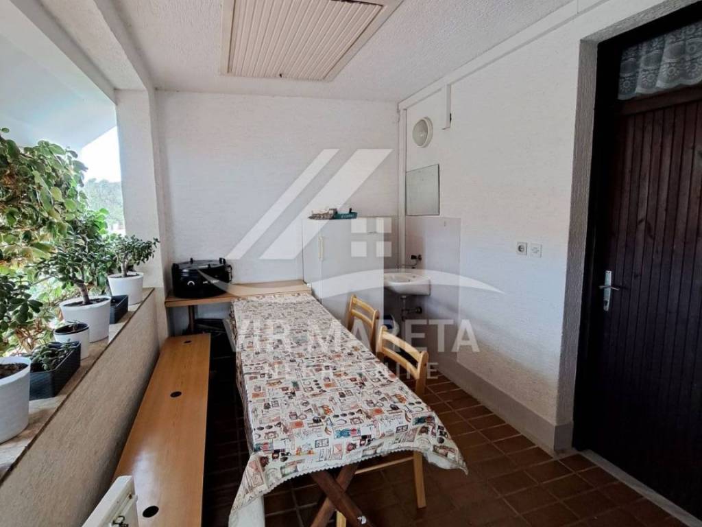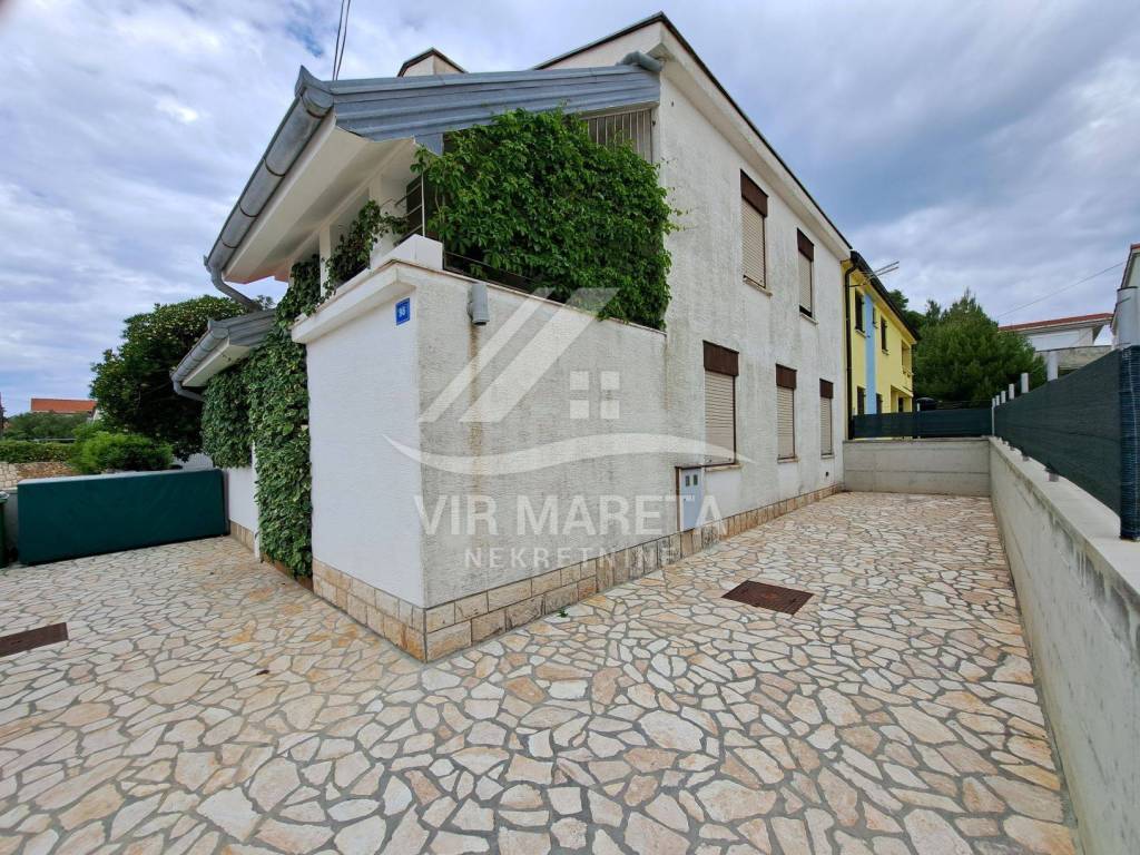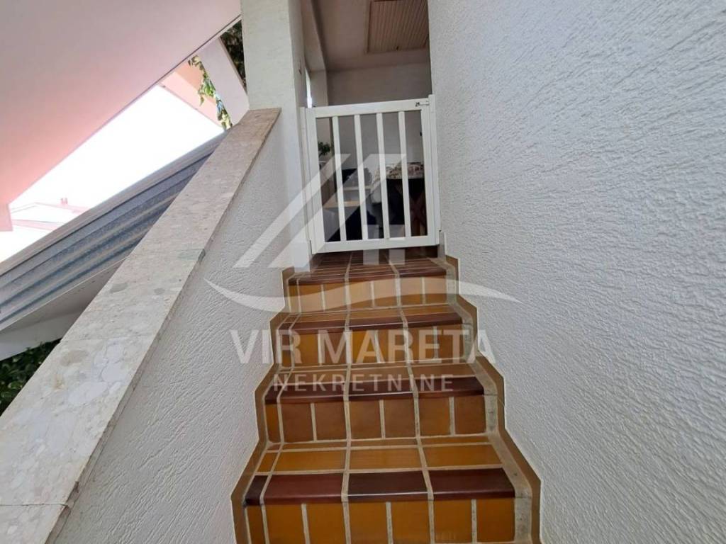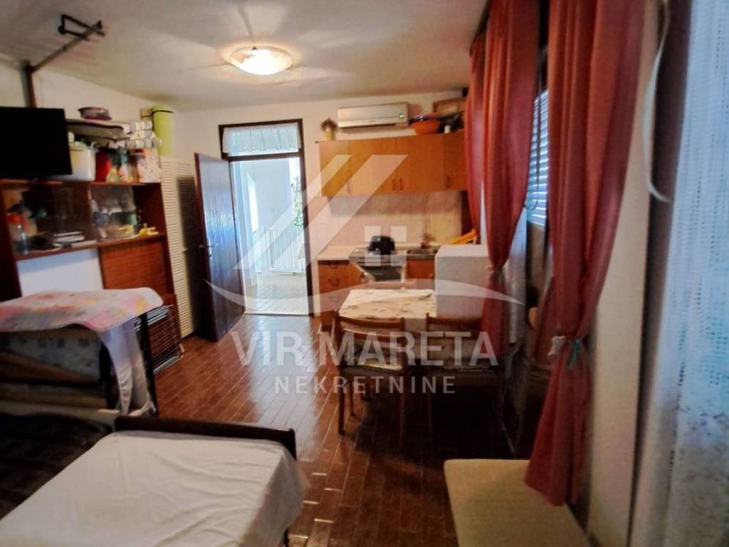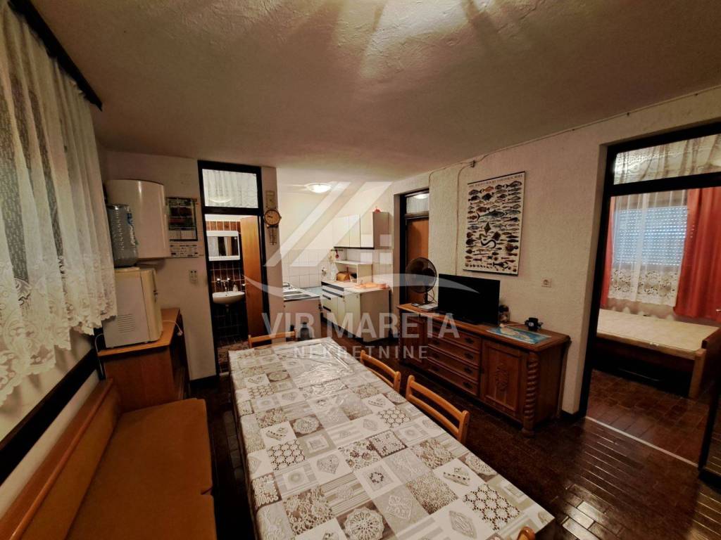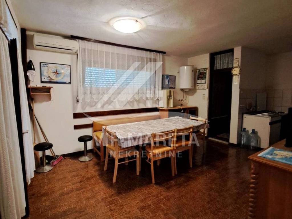 House with three apartments on the south side of the island of Vir. On the ground floor there is a comfortable apartment consisting of a kitchen with a living room, three bedrooms, a bathroom with a toilet and a covered terrace. There is a separate toilet on the terrace on the ground floor. On the first floor there are two studio apartments and a covered terrace that is shared by both studio apartments. The first floor is reached by an external staircase. The house has a basement, city water and sewage connection. Three vehicles can be parked in the yard. It is located in an excellent position, 100 meters from the beach.