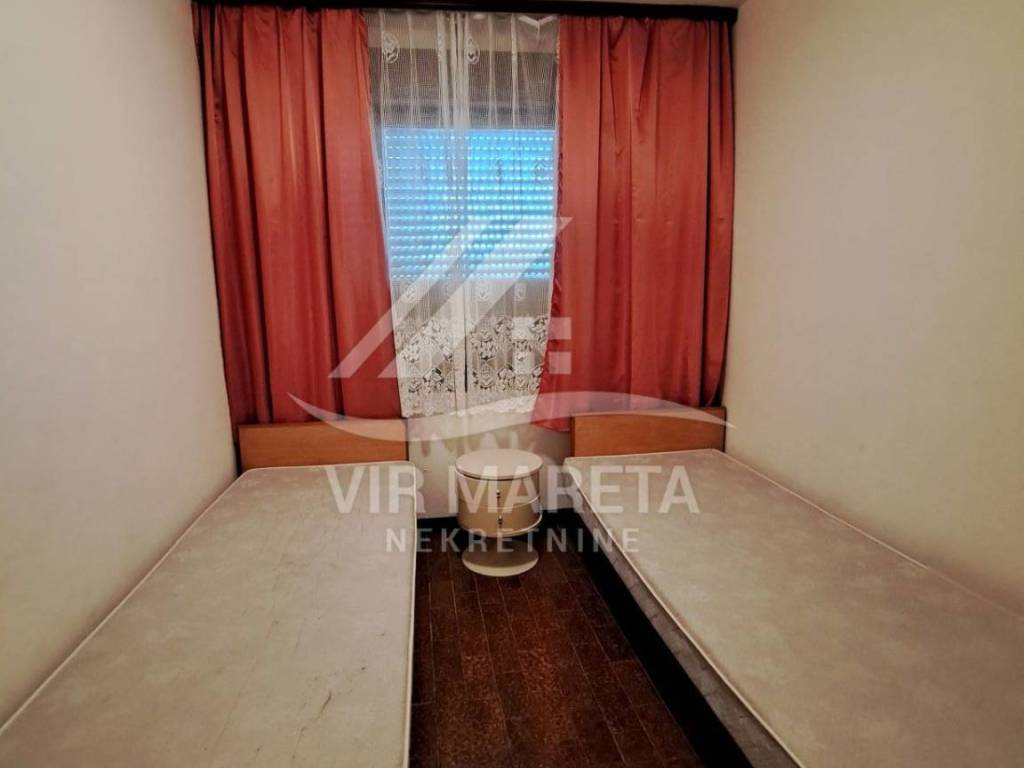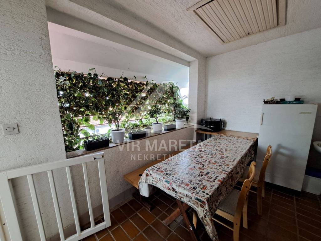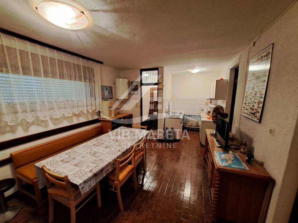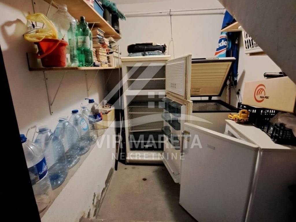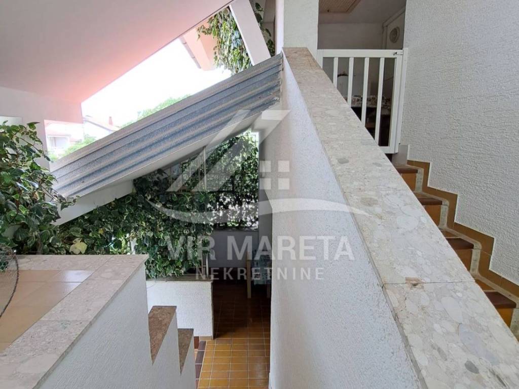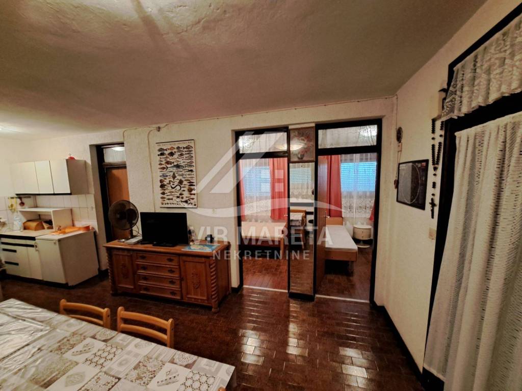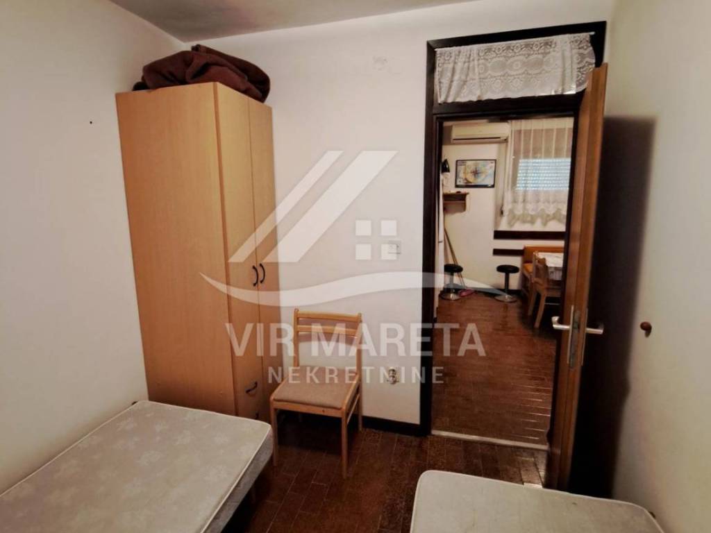 House with three apartments on the south side of the island of Vir. On the ground floor there is a comfortable apartment consisting of a kitchen with a living room, three bedrooms, a bathroom with a toilet and a covered terrace. There is a separate toilet on the terrace on the ground floor. On the first floor there are two studio apartments and a covered terrace that is shared by both studio apartments. The first floor is reached by an external staircase. The house has a basement, city water and sewage connection. Three vehicles can be parked in the yard. It is located in an excellent position, 100 meters from the beach.