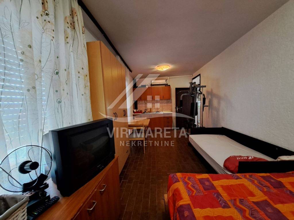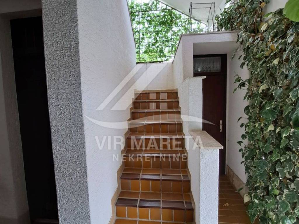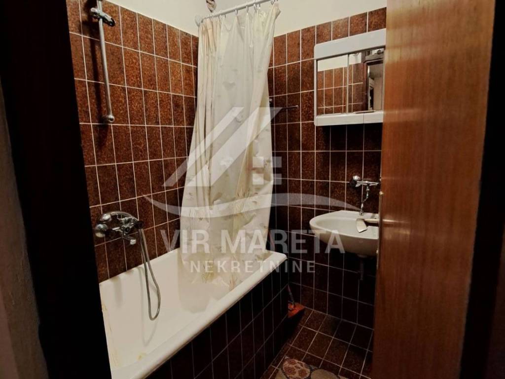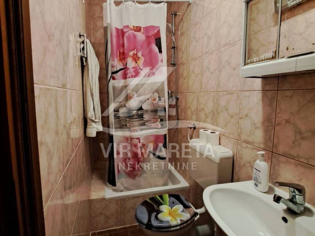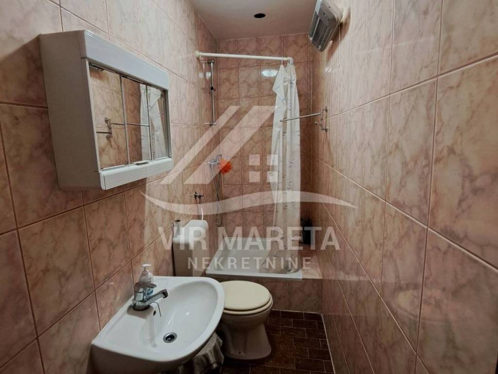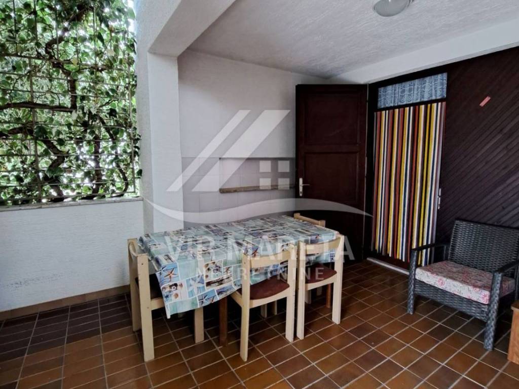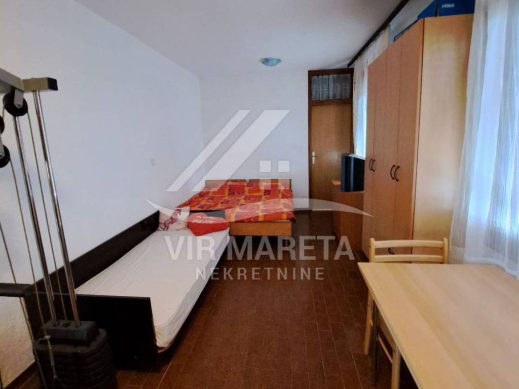 House with three apartments on the south side of the island of Vir. On the ground floor there is a comfortable apartment consisting of a kitchen with a living room, three bedrooms, a bathroom with a toilet and a covered terrace. There is a separate toilet on the terrace on the ground floor. On the first floor there are two studio apartments and a covered terrace that is shared by both studio apartments. The first floor is reached by an external staircase. The house has a basement, city water and sewage connection. Three vehicles can be parked in the yard. It is located in an excellent position, 100 meters from the beach.