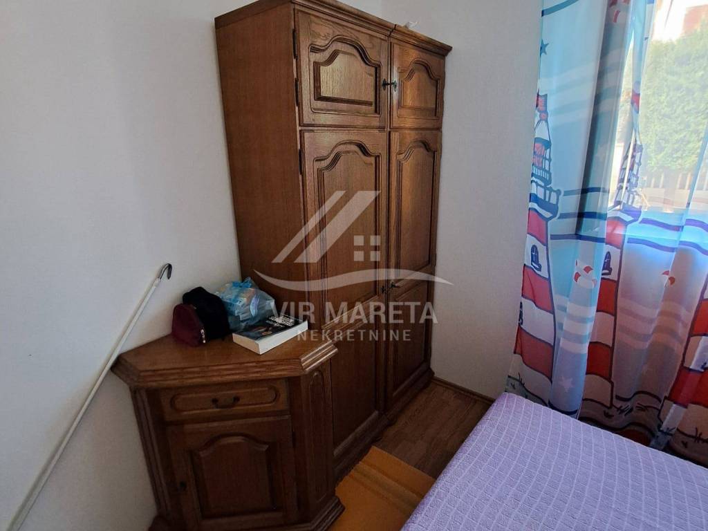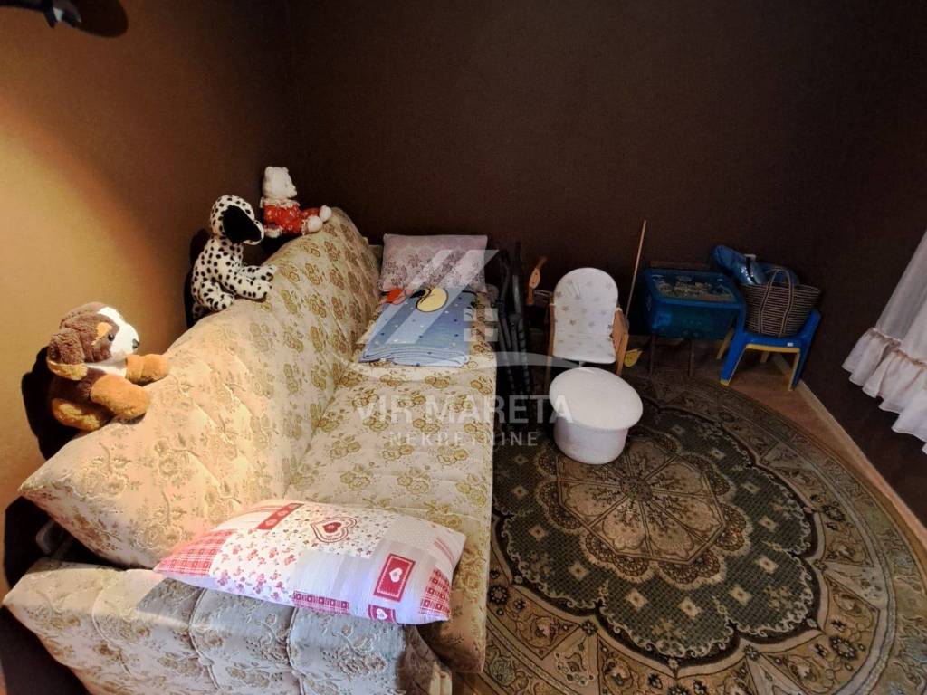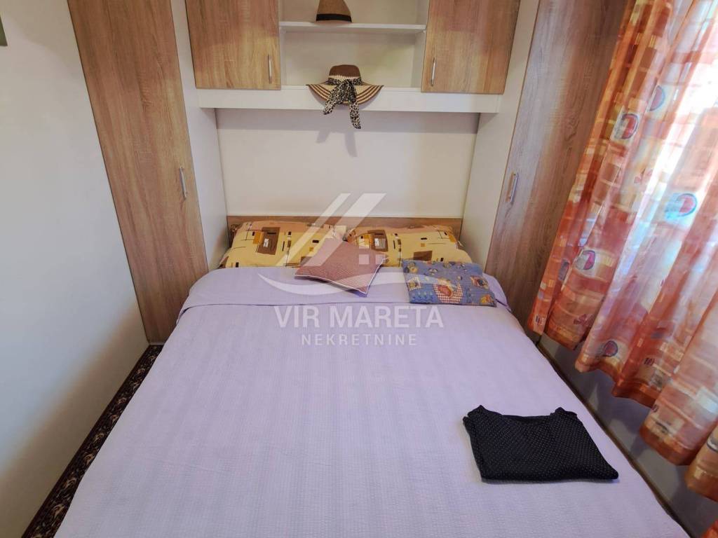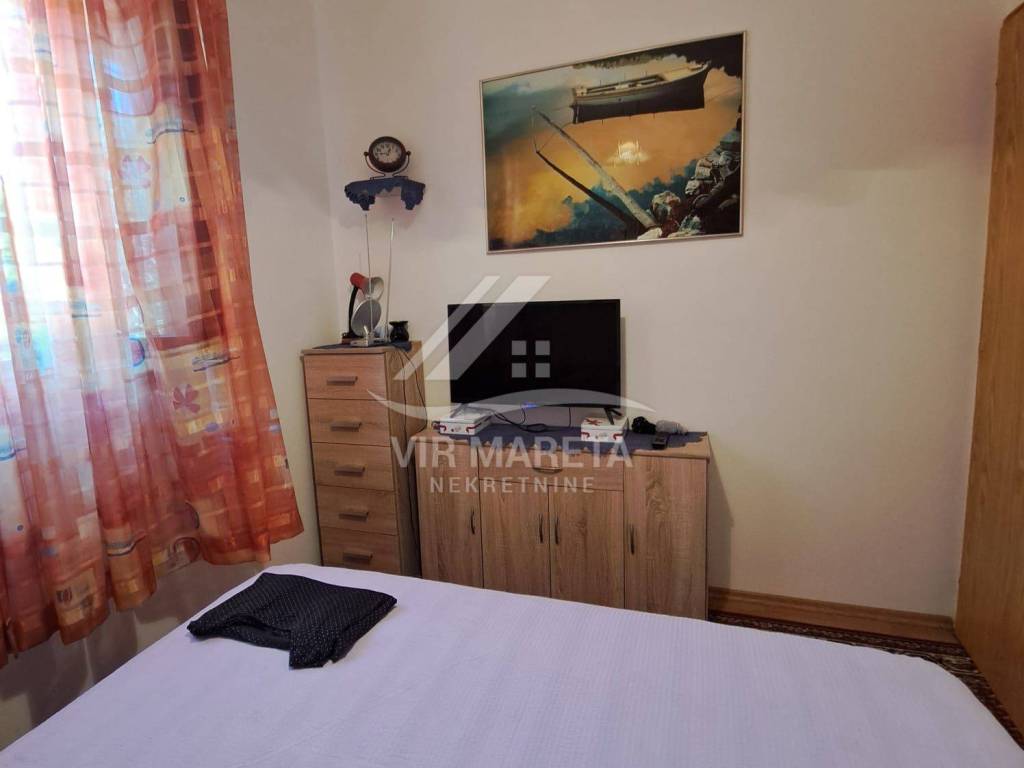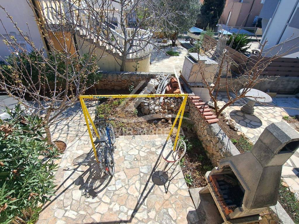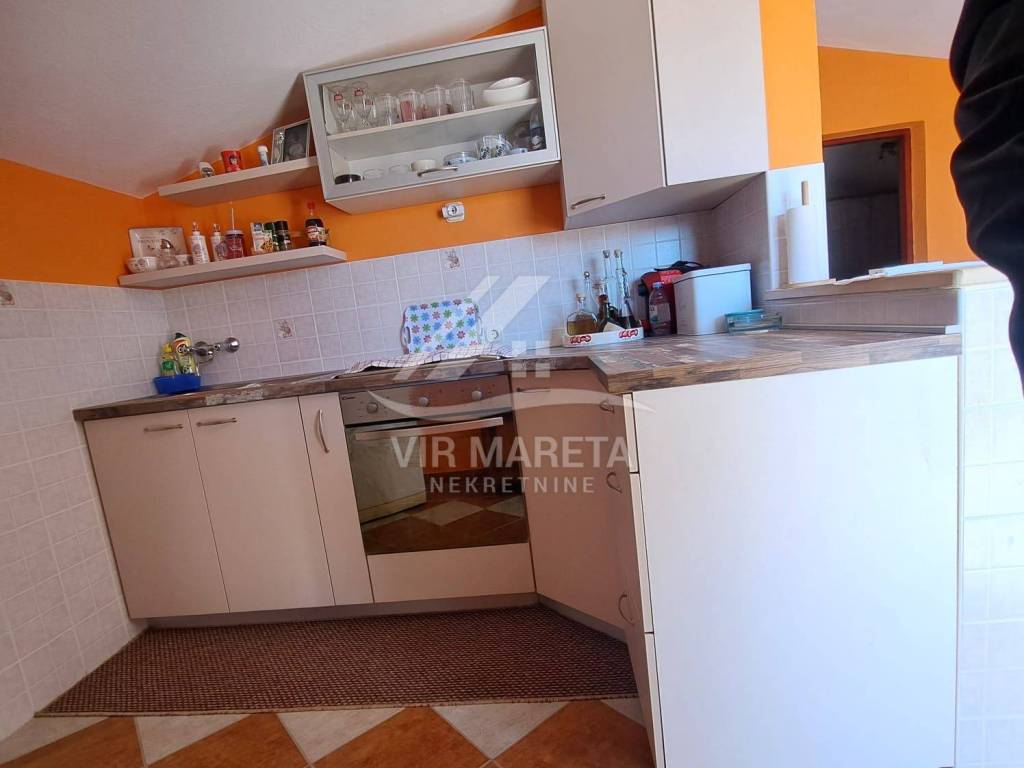 The ground floor consists of a kitchen with a living room, two bedrooms, a bathroom and a large covered terrace. The apartment is fully furnished and air-conditioned, a custom-made kitchen with appliances, one bedroom has a TV, the bathroom has a washing machine and a new hot water boiler.