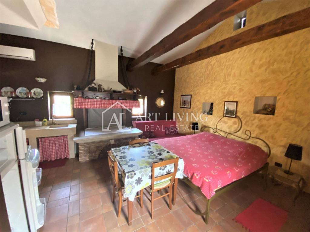 In front of the house, as one of the advantages of this unique property, there is a tavern, now a studio apartment of approx. 30 m2, completely decorated in a rustic style with its own indoor fireplace and bathroom and a covered terrace with a summer kitchen and dining area.
