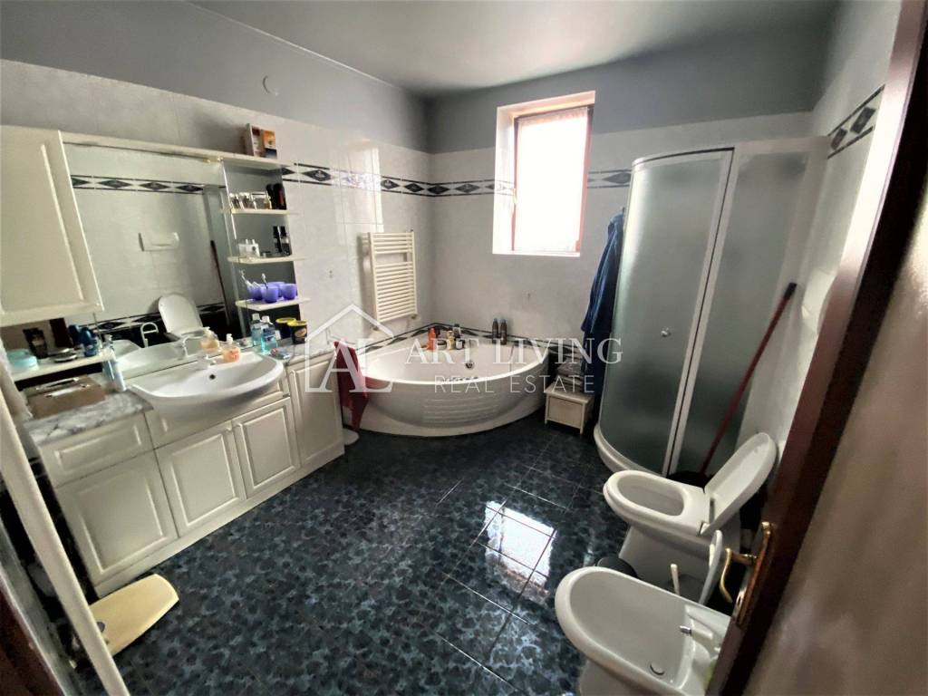 The house has several private parking spaces, three covered and an underground buried garage with two parking spaces, its own olive grove (30 olive groves) orchard. In the basement of approx. 50 m2 there is a boiler room with central heating.