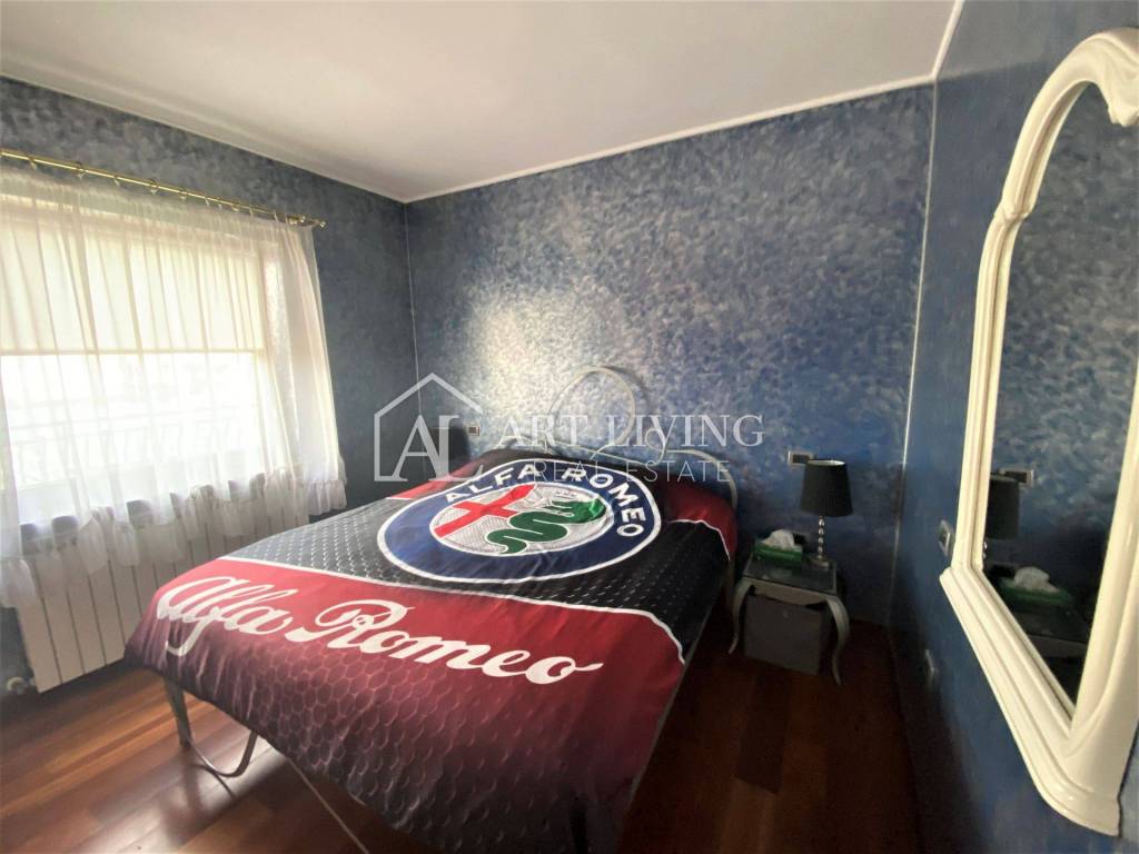 The apartment on the ground floor consists of a hallway, kitchen with dining area, spacious living room with access to a large terrace and garden, separate rooms where the wardrobe is located and a bathroom with jacuzzi. From the living room, a staircase leads to the middle floor where there are 3 bedrooms with a bathroom and a large lobby with access to a balcony.