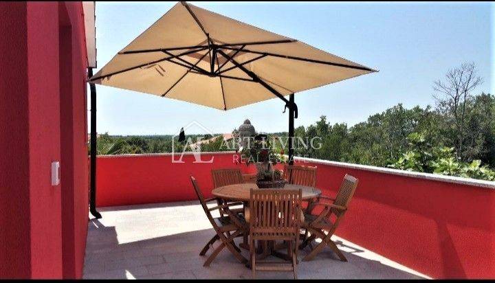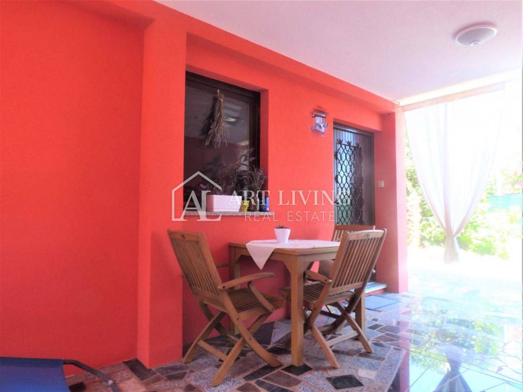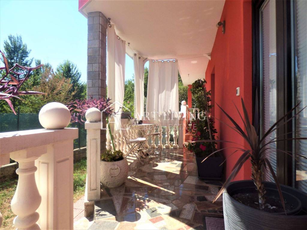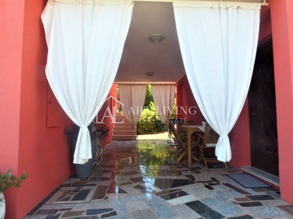 A spacious detached house of 180.59 m2 with a large garden of 600 m2 at only 1000 m from the sea, 3 km from the border with Slovenia and 5 km from the center of Umag.