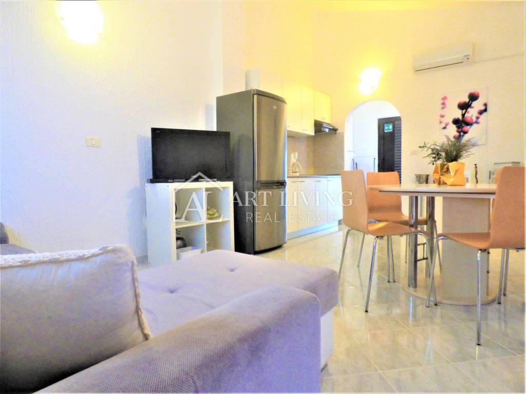 On the ground floor with a total area of 97.93 m2 there are two apartments. The apartments consist of a living room with kitchen and dining room, bedroom and bathroom. Both apartments have direct access to the terrace.