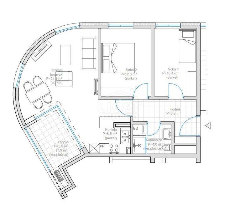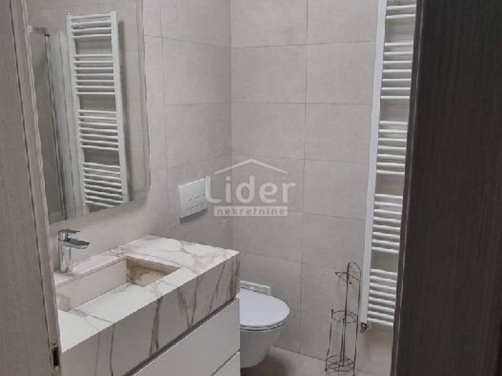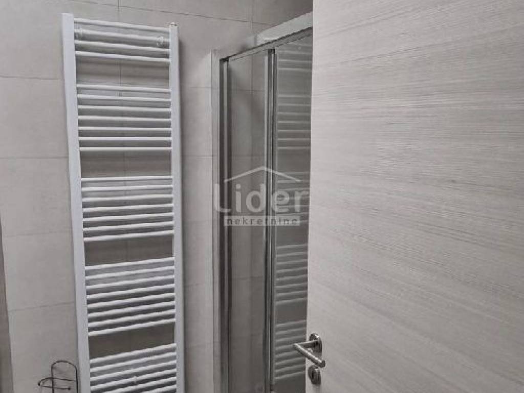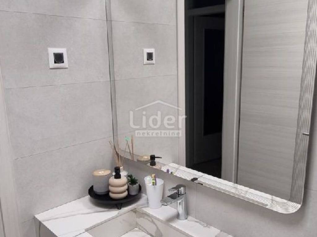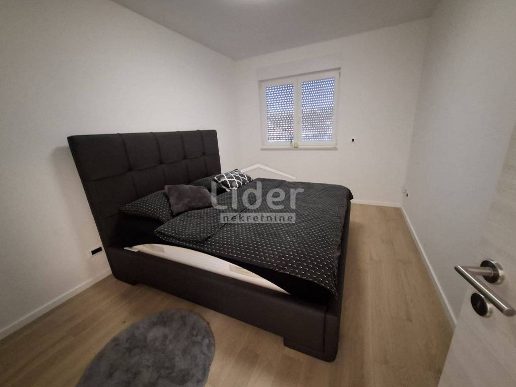 Martinkovac, newly built, modernly furnished apartment, 76.80 m² in size, with a beautiful view. It consists of a kitchen with a dining area and living room, two bedrooms, a bathroom, hallway, loggia, and storage room. The smaller room is set up as a walk-in closet, with the possibility to place a smaller 90x200 bed or a desk. The apartment is double-oriented to the north and mostly to the northwest, ensuring plenty of sunlight in the living room during the afternoon hours, which opens onto a loggia with a wonderful sea view. From the loggia, there is a beautiful panoramic view of Opatija, the Rijeka Bay and islands, as well as the hilly hinterland. The bedrooms are oriented to the north. Hot water is supplied via the boiler room. The apartment is fully equipped with underfloor heating. Each room has its own thermostat. An air conditioner is installed in the living room. The building has video surveillance and a fire alarm system. The apartment comes with two garage parking spaces with a total area of 25 m².