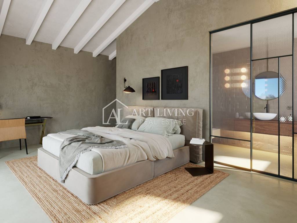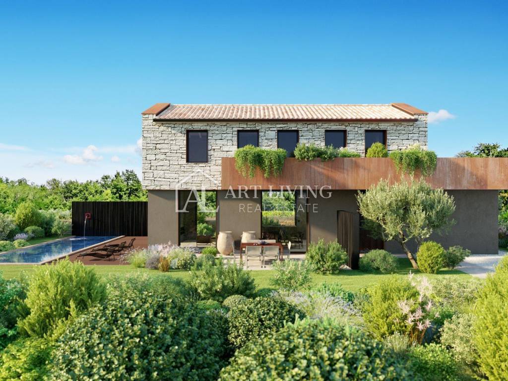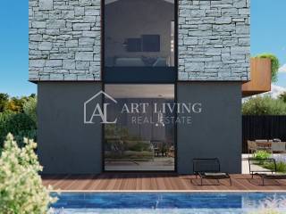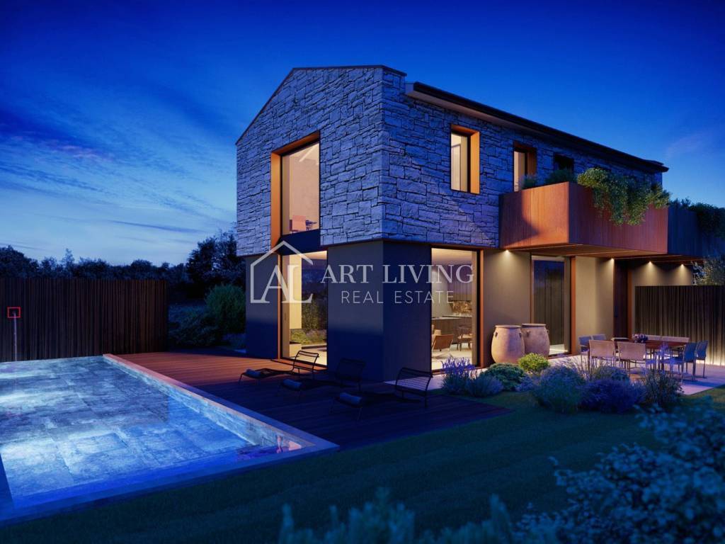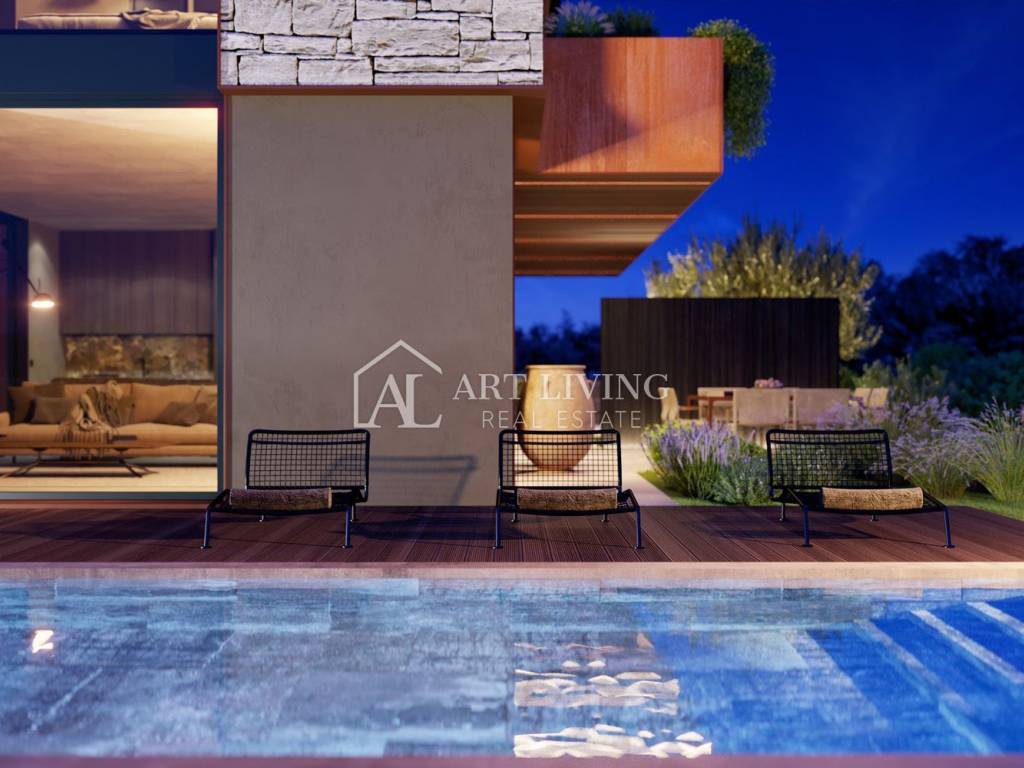 A luxury villa of modern design with a swimming pool in a new building is for sale, 13 km from the sea, close to all essential facilities (shops, restaurants, post office, bank, etc.). It is 13 km from the city of Rovinj, 27 km from the city of Pula and the airport.