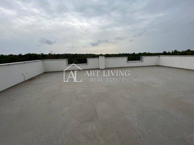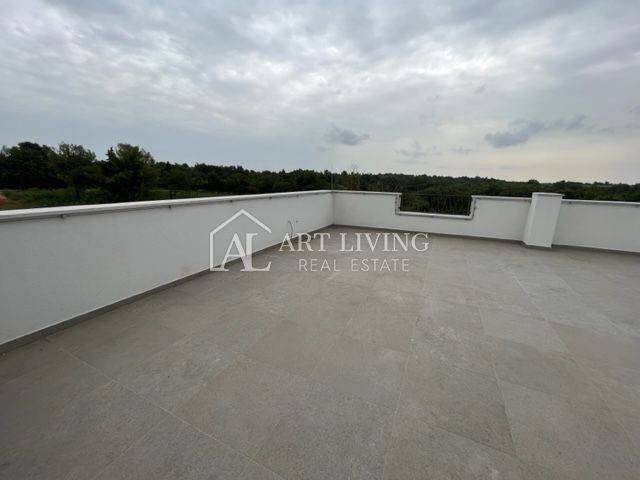 A modern, newly built apartment for sale on the 1st floor with a roof terrace of 90 m2, in an attractive location 600 m from the sea and beaches, only 6 km from the city of Poreč.