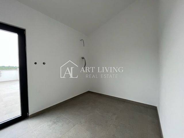 A modern, newly built apartment for sale on the 1st floor with a roof terrace of 90 m2, in an attractive location 600 m from the sea and beaches, only 6 km from the city of Poreč.