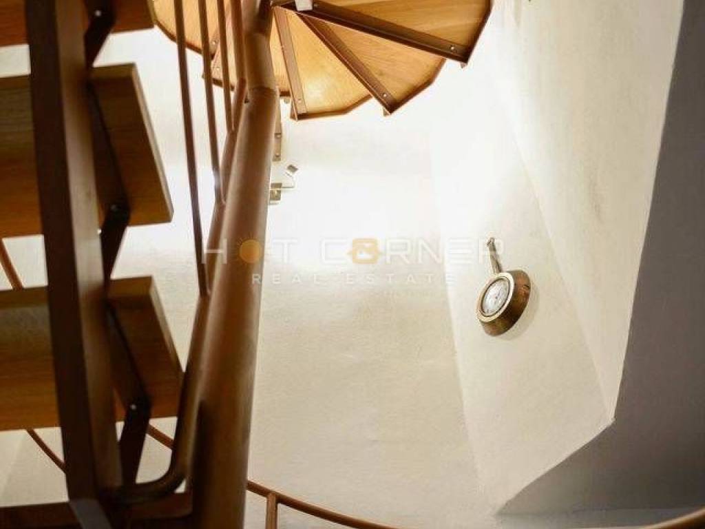 APARTMENT NUMBER 1: completely separate entrance from the other side of the house. The apartment has 75 m2 and is spread over 3 floors. The ground floor has a living room with kitchen and dining area. Spiral stairs lead to the 1st floor where there is a bathroom and a bedroom, and to the 2nd floor where there is a bedroom and a balcony with a sea view.