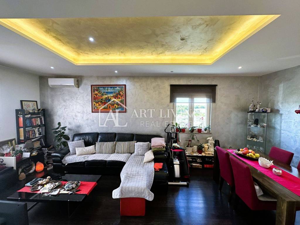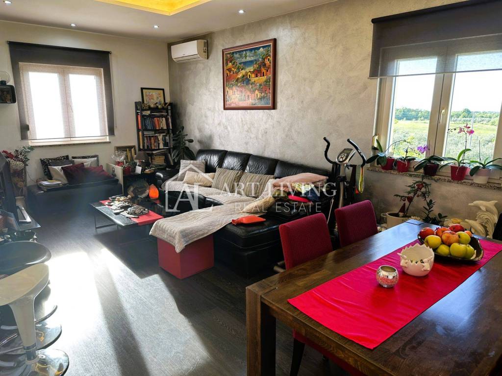 A beautifully decorated, spacious apartment is for sale in a quiet and beautiful place, 2.5 km from the town of Umag and just as far from the sea and well-kept beaches.
