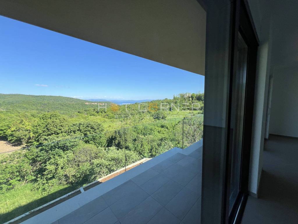 In a beautiful location, on the edge of Labin, a penthouse on the 2nd floor of a modern small building with Mediterranean architectural elements is for sale. The apartment has an area of 100 m2 and consists of a hallway, 3 bedrooms, 2 bathrooms, an open space living area with a kitchen and dining room. Through a large glass wall, the living room leads to a spacious terrace with a wonderful view of the sea and nature, while one of the bedrooms offers a view of old Labin. Ready to move in immediately, quality finishing materials, electric shutters with mosquito nets, air conditioning in every room, security entrance door, intercom, Sat/TV. The apartment has one designated outdoor parking space in front of the building. A beautiful elegant apartment with a rarely beautiful view. 400,000€