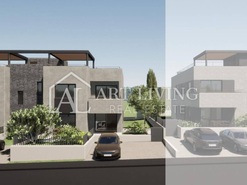 In an extremely attractive location, only 2 km from the center of Poreč and 1 km from the sea and landscaped beaches, this luxury apartment is for sale on the ground floor of a small modern residential building with four residential units.