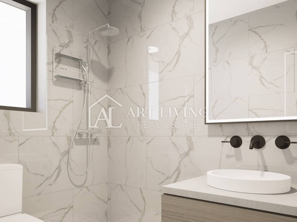An attractive apartment for sale in a new building, in a smaller, modern residential building with 4 residential units, in an attractive location in the suburbs of Umag. The apartment is located in a quiet environment, with a beautiful view of the greenery and the sea, only 2 km from the beaches and the city center.