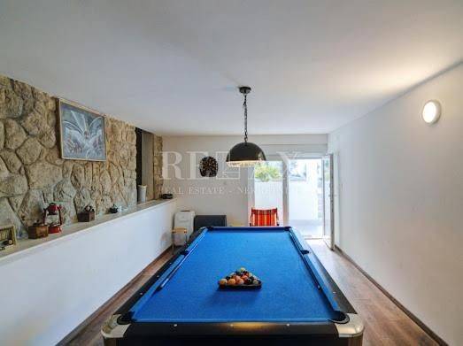 On the first floor, there are four bedrooms and three bathrooms. Each room is equipped with air conditioning, ensuring maximum comfort throughout the year. The basement is designed as a recreational area, featuring a billiard table and a storage room.