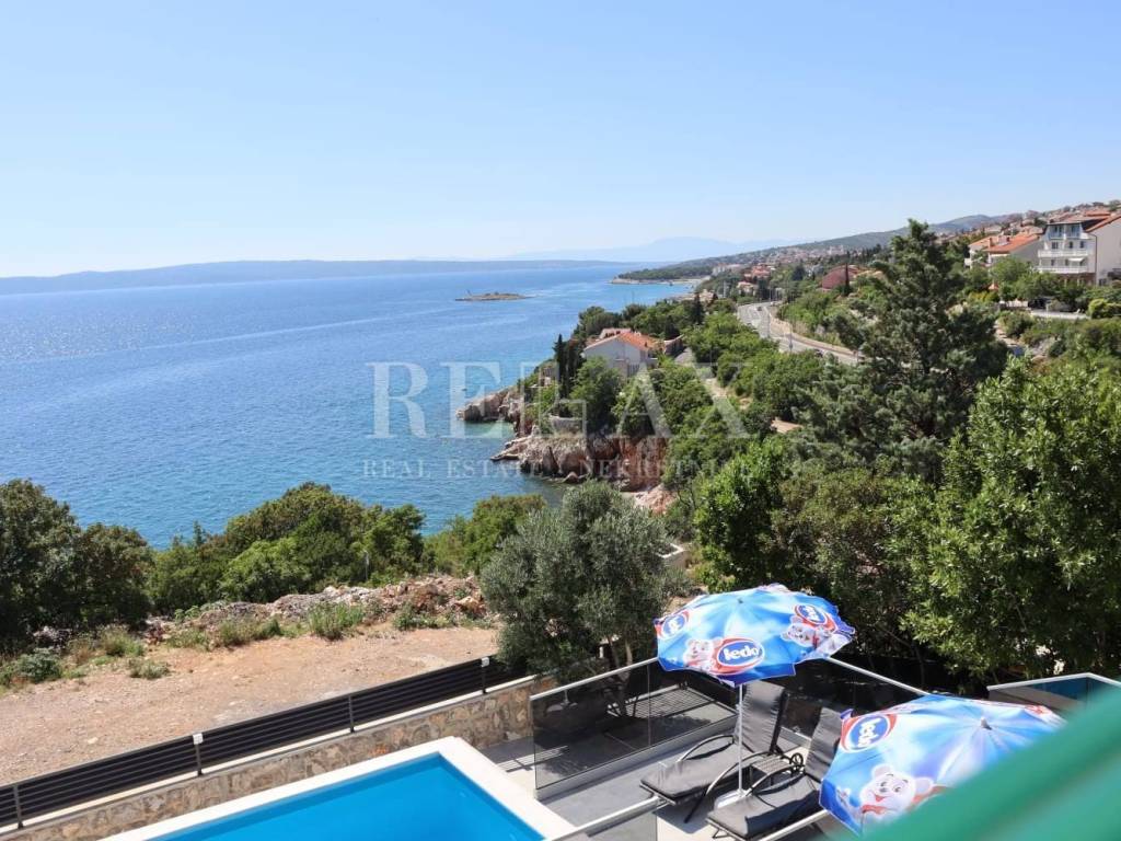 In the first row to the sea, just 90 meters from the shore, lies this stunning villa with a pool in Novi Vinodolski. With a total living area of 239 m² and a spacious plot of 454 m², it offers the perfect blend of comfort, elegance, and a prime location.