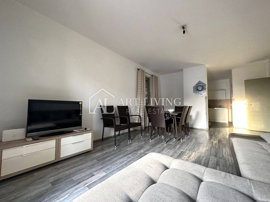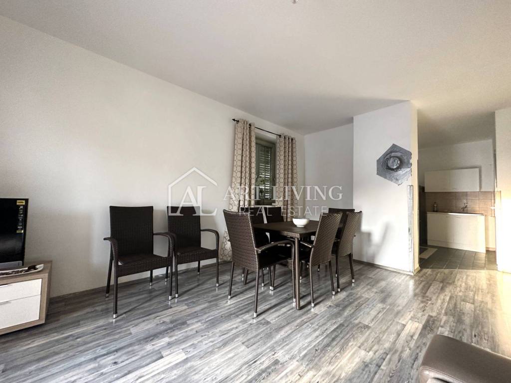 The second residential unit is located on the first floor and consists of a furnished living space consisting of a living room with a kitchen and dining room, two bedrooms, a hallway, a toilet and a covered outdoor terrace.