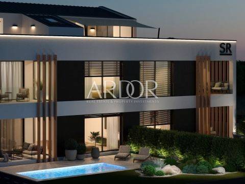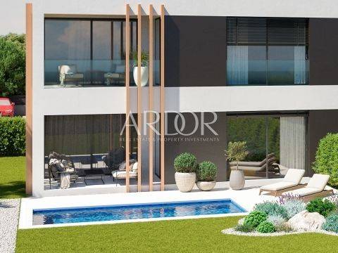 Experience refined living in Rovinj with this contemporary first-floor apartment, offering 113 m² of thoughtfully designed interior. The layout includes a spacious entrance hall, a large open-plan living room of 36.8 m² seamlessly connected to the kitchen and dining area, and direct access to a private 10.1 m² loggia – perfect for outdoor relaxation. Two comfortable bedrooms and two modern bathrooms ensure privacy and practicality, while a separate laundry room adds convenience.
