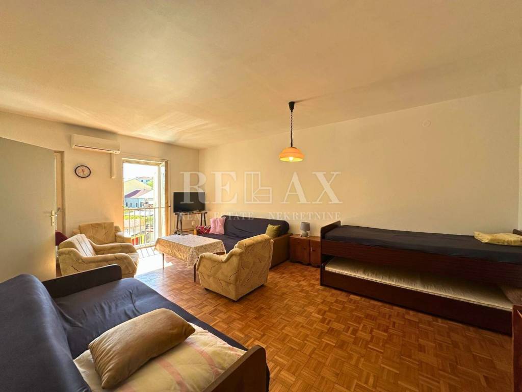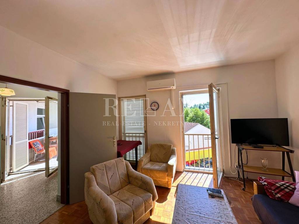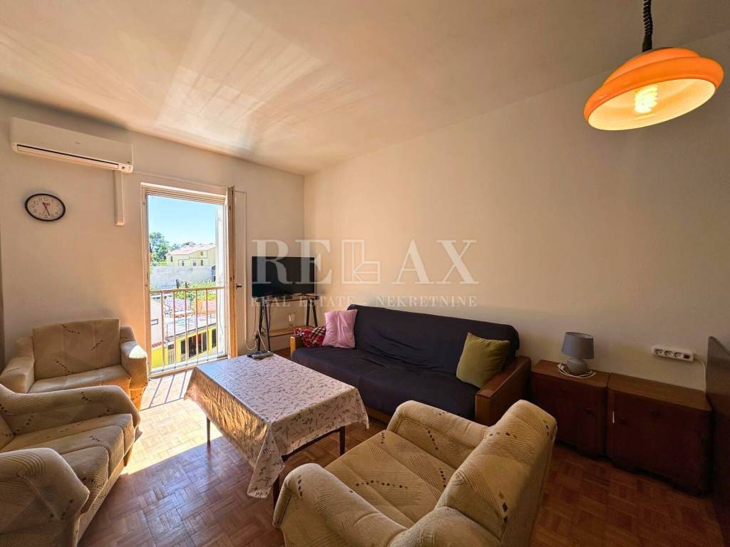 For sale is a functional and fully furnished apartment located in the very heart of Crikvenica, just 150 meters from the sea. The apartment is situated on the second floor of a residential building constructed in 1974, which consists of a total of three floors. Thanks to its southern orientation, the space is filled with natural light throughout the day.