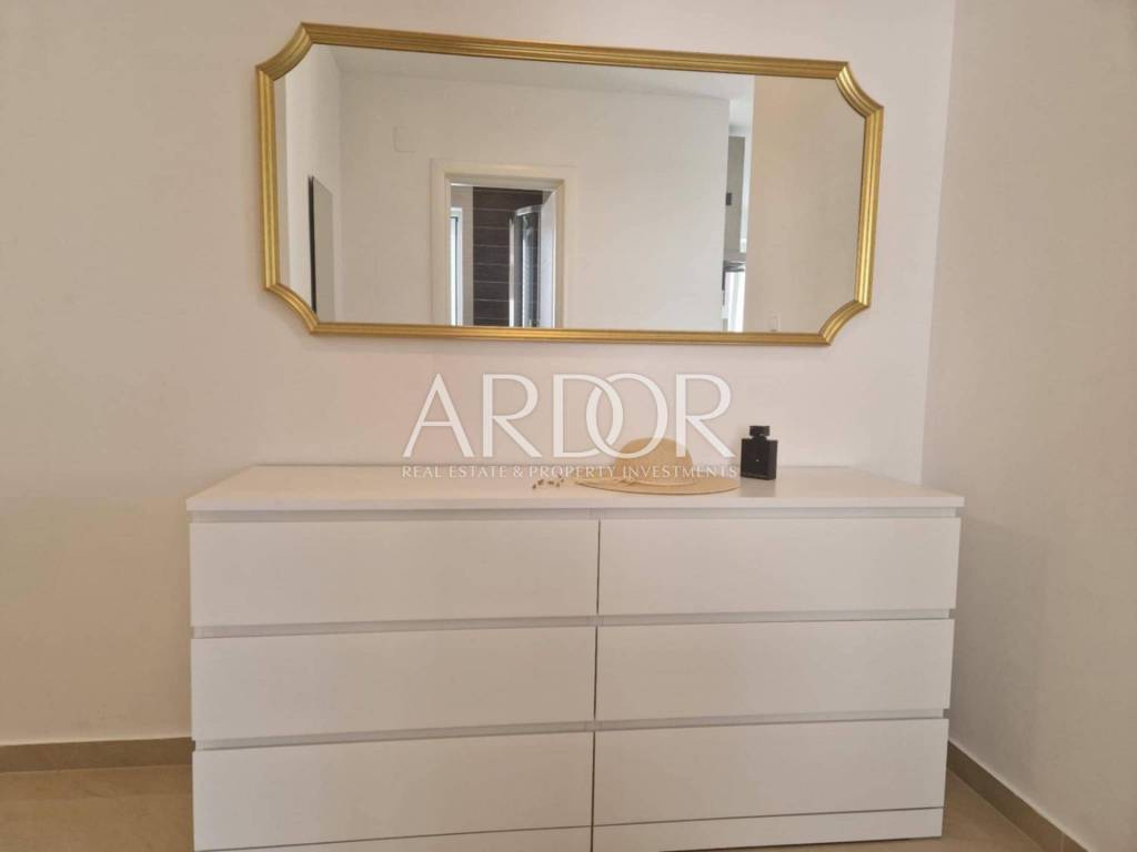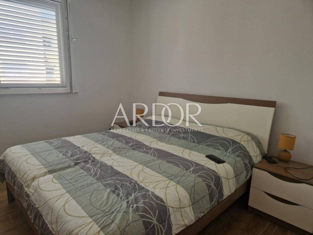 An apartment of 52.13 m² is for sale in Palit on the island of Rab, located on the first floor of a high-quality residential building constructed and occupied in 2016, with an enclosed staircase. The apartment consists of a living room, bedroom, kitchen with dining area, bathroom, hallway, and a spacious terrace of at least 8 m². The southern orientation provides plenty of natural light and pleasant warmth throughout the year.