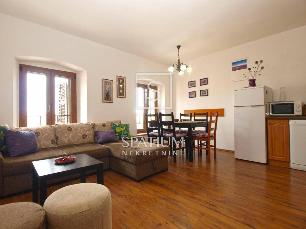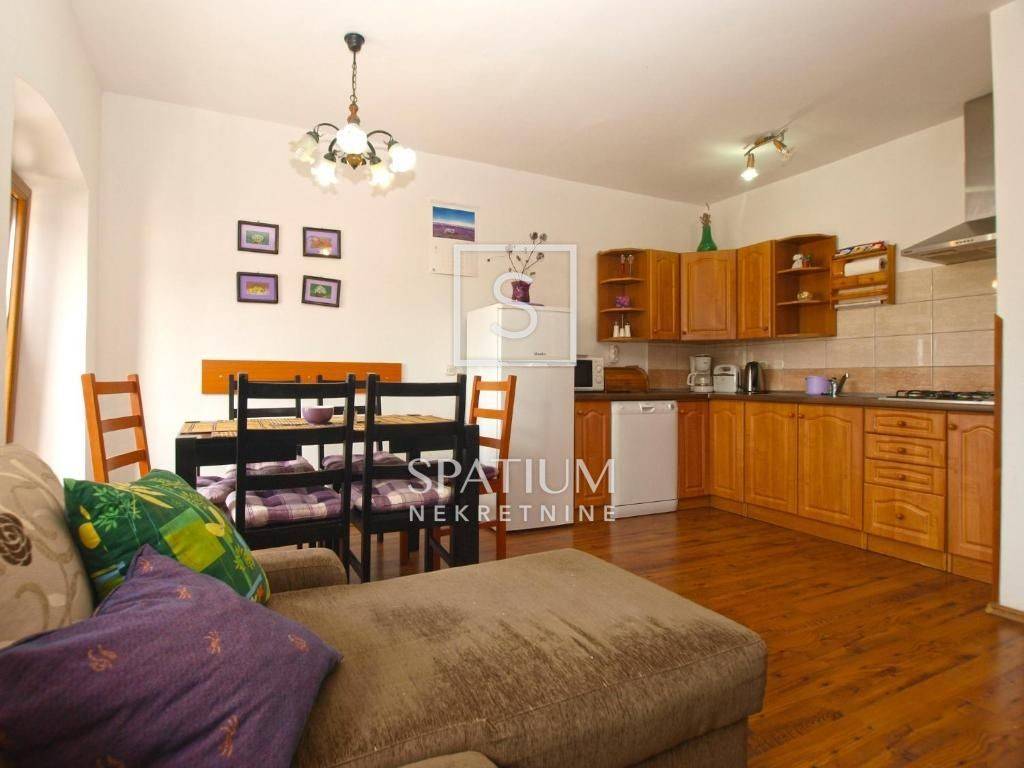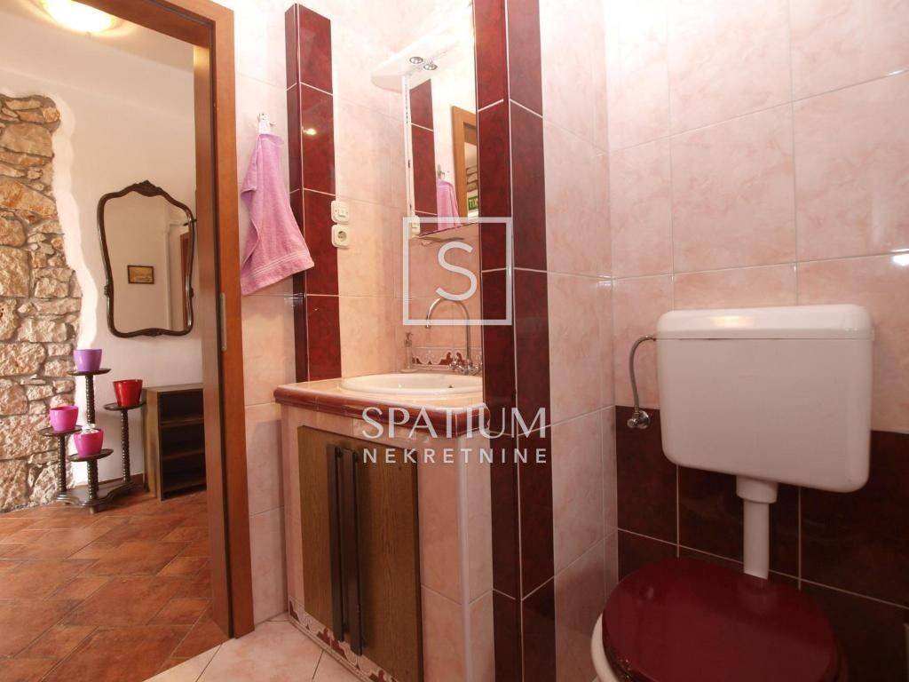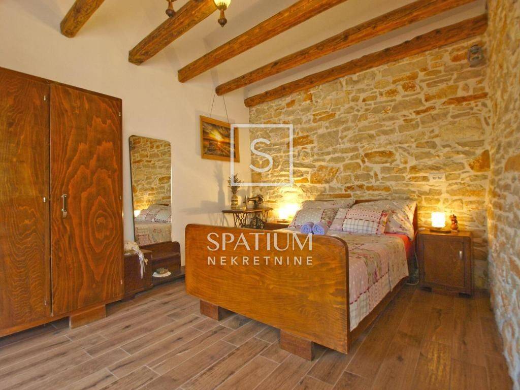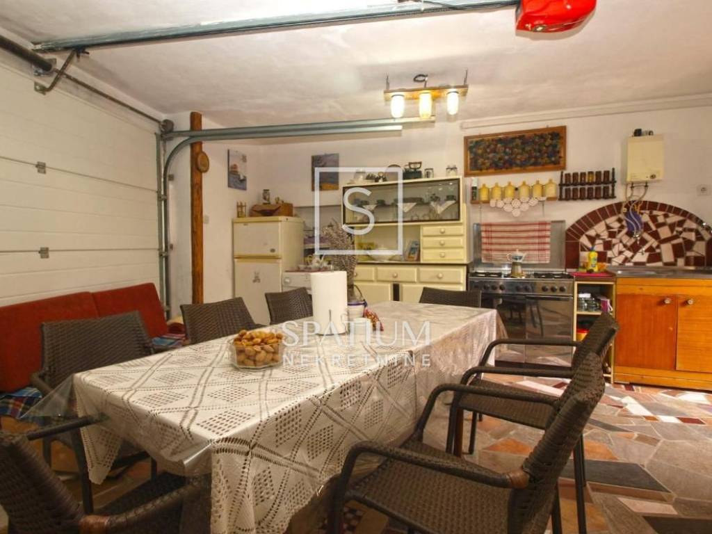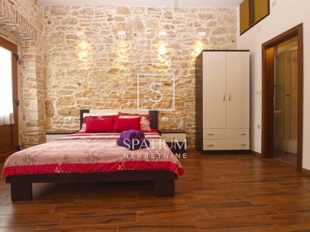 MEDULIN, we have received a stone house with a living area of 150 m2 and a garden of 200 m2. On the ground floor there is a large room with a bathroom and installations for kitchen connections. It contains a garage with a utility room that is currently used as a tavern. From the hallway you enter the yard where there are external stairs leading to the first floor. On the first floor there is a room with a terrace, hallway, bathroom, living room, and installations for kitchen connections have also been carried out. Internal stairs lead to the attic where there is a bathroom, living room with kitchen and bedroom. Considering that the property is located a few minutes walk from the first beaches and summer facilities, it is ideal as an investment for tourist rental.