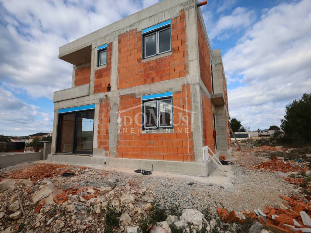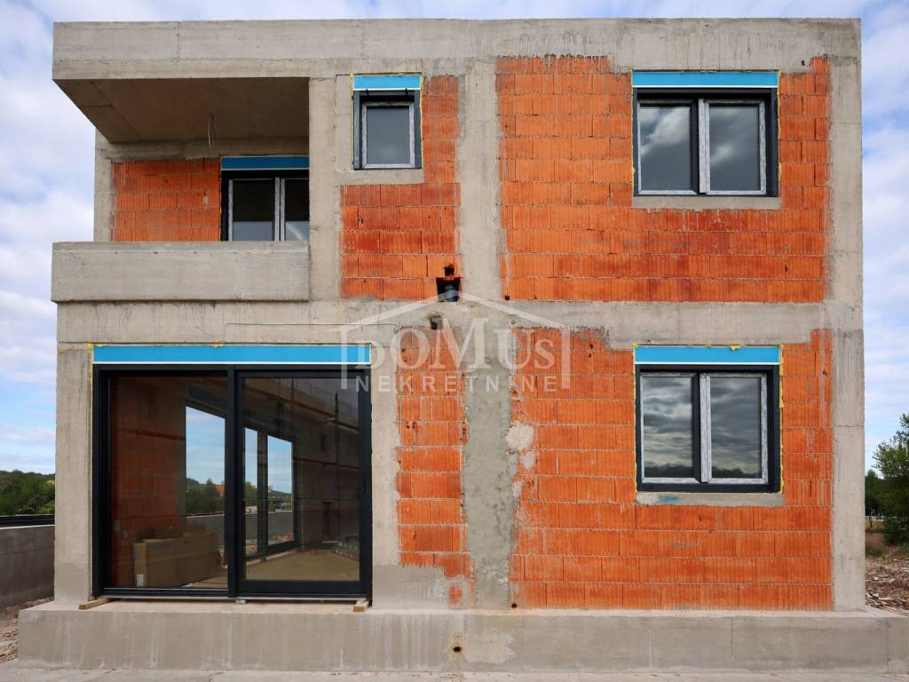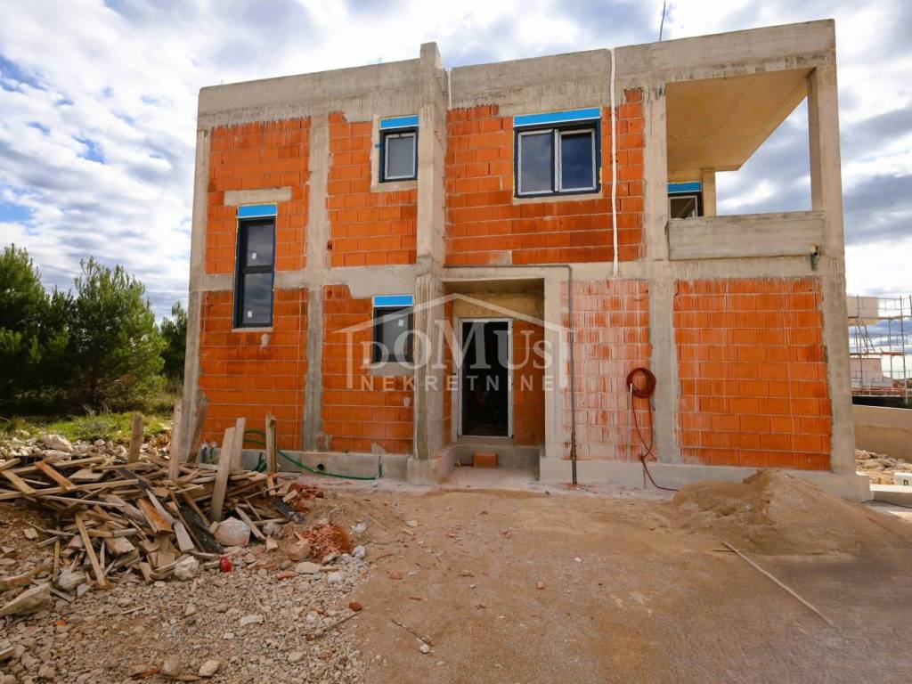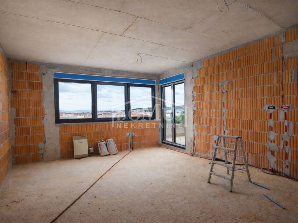 Vodice, quiet environment, new building, apartment marked S2 with 79.01 m2 of usable area, located in a smaller residential building with a total of 3 residential units. The apartment is two-storey with an area of 75m2, where the ground floor has an entrance, a storage room and a staircase to the 1st floor. On the first floor there is a staircase, a hallway, a bathroom, two bedrooms, a kitchen with a dining room and a living room with an exit to the terrace. The apartment will be equipped with underfloor heating in the kitchen with dining room and living room and bathroom, air conditioners in the room and living room, PVC carpentry with blinds and mosquito nets, with electric blind lifters, high-quality sanitary ware and ceramics. The apartment has a yard on the ground floor of 10.10m2 and one outdoor parking space. The facility is 1,000m from the beach and 900m from the town center. Planned move-in date: end of summer 2026.