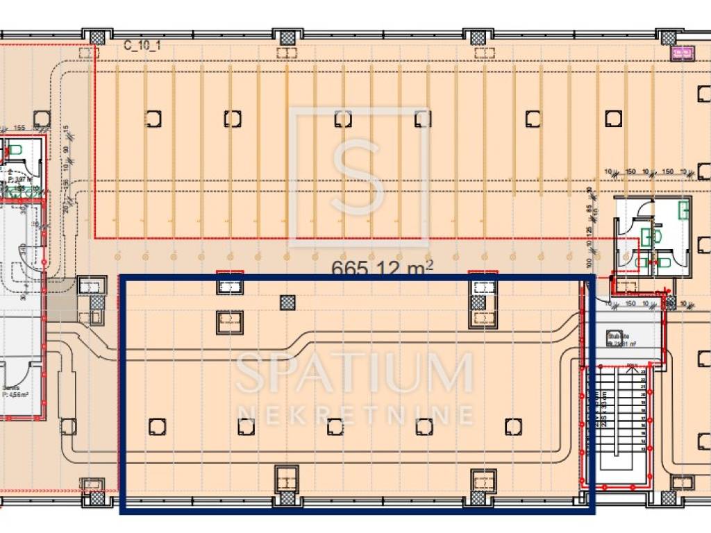 Ukupna površina ureda je 200m2. Postoji mogućnost pregrade većeg ureda pošto prostorija ima dva odvojena ulaza. Velike staklene površine garantiraju ugodnu radnu okolinu te osiguravaju dovoljnu količinu dnevnog svjetla.