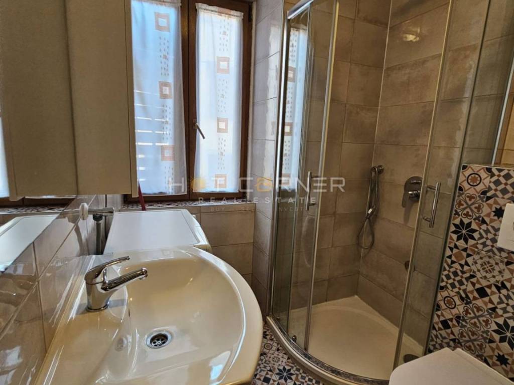 Located on the first floor of a 17th- or 18th-century building, the apartment consists of one bedroom, an open-plan living room with kitchen and dining area overlooking Carera Street, two small storage rooms, and a beautifully renovated bathroom.