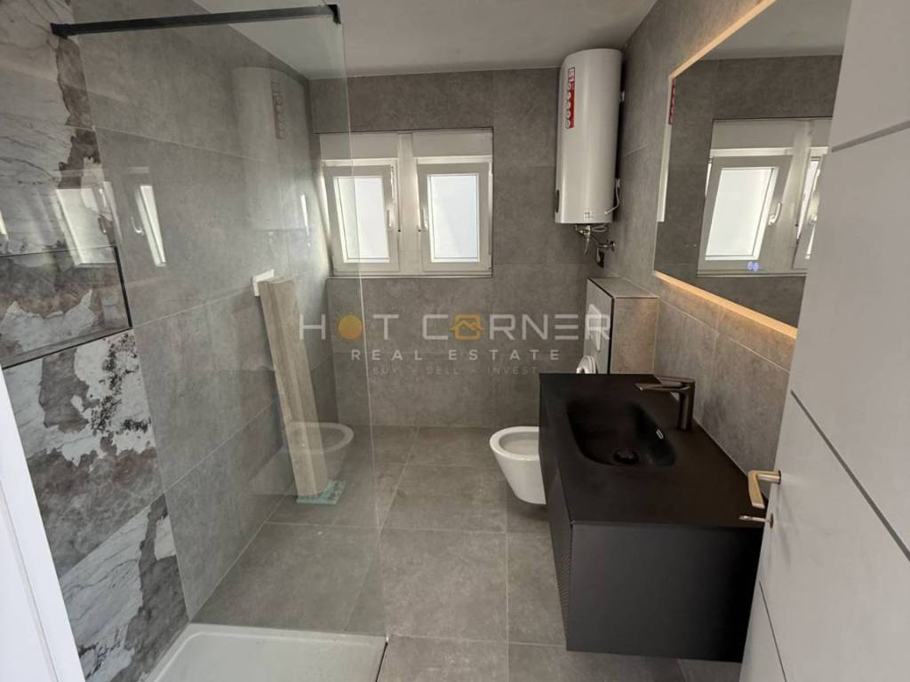 The apartment has been completely renovated recently (new roof, new electrical and plumbing installations, thermal and waterproof insulation, gutters, facade, walls, tiles, sanitary ware, PVC joinery, mosquito nets, security entrance door). The apartment faces west, south and north. From the west-facing terrace there is a beautiful view of the sea, the Arena and Pula harbor. The apartment is located on the 4th floor; the building has no elevator. Parking behind the building in a shared parking area. Ownership 1/1, occupancy permit, partial purchase through credit possible.