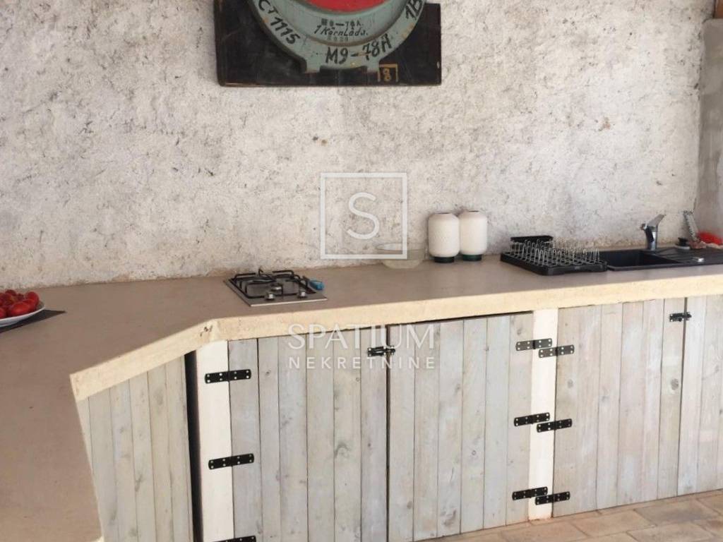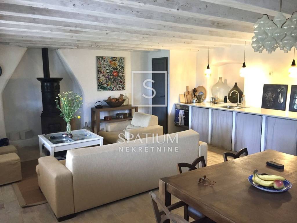 LABIN, an authentic Istrian stone house of 120 m² is for sale, fully restored using traditional methods and natural, ecological materials such as lime, sand and water. Set on a total plot of 1,440 m² (823 m² + 617 m²), this property radiates warmth, elegance and timeless charm. The house spreads over three floors and consists of three bedrooms, two bathrooms with toilets, an additional guest toilet, a kitchen, and an open-concept living and dining area with access to a terrace surrounded by greenery. The interior is enriched with carefully selected elements from Tuscany, such as travertine stone and traditional terracotta tiles, while a preserved original 19th-century stove adds a unique Italian touch. With completely renewed infrastructure (electricity and water), the house also features its own rainwater cistern and a covered summer kitchen. In the courtyard, there is a swimming pool with an eco-friendly filtration system, a fruit orchard, and 11 olive trees, which further emphasize the authenticity and self-sufficiency of the property. Additional value is provided by the adjacent plot with an authentic Istrian stone house of 80 m² on two levels, waiting for renovation according to your wishes.
