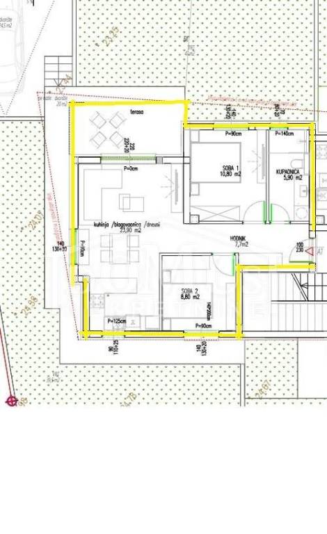 New construction, two-bedroom apartment with a total usable area of 89.30 m² and an adjoining garden of 86.50 m², located on the ground floor of a residential building with a total of 6 residential units. The location combines the charm of a village with proximity to the sea, perfect for those seeking a peaceful and comfortable lifestyle with all necessary amenities. The apartment consists of an entrance hallway, two bedrooms, one bathroom, and a kitchen with a dining area and living room that opens onto a covered terrace of 9.25 m². The apartment is oriented to the northeast and includes one parking space. Premium modern equipment made of high-quality materials: air conditioning in all rooms, underfloor heating in the bathroom, electric roller shutters, and mosquito nets. Occupancy is planned for the beginning of 2027.