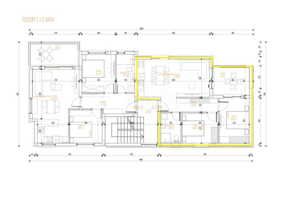 Newly built two-bedroom apartment with a total usable area of 59.67 m², located on the second floor of a residential building with a total of six units. The property’s location combines the charm of a village with proximity to the sea – perfect for those seeking a peaceful and comfortable lifestyle with all necessary amenities. The apartment consists of an entrance hall, two bedrooms, one bathroom, and a kitchen with a dining area and living room that opens onto a covered terrace of 8 m². The apartment faces northwest and includes one parking space. Premium modern equipment made of high-quality materials: air conditioning in all rooms, underfloor heating in the bathroom, electric roller shutters, and mosquito nets. Move-in is planned for the beginning of 2027.