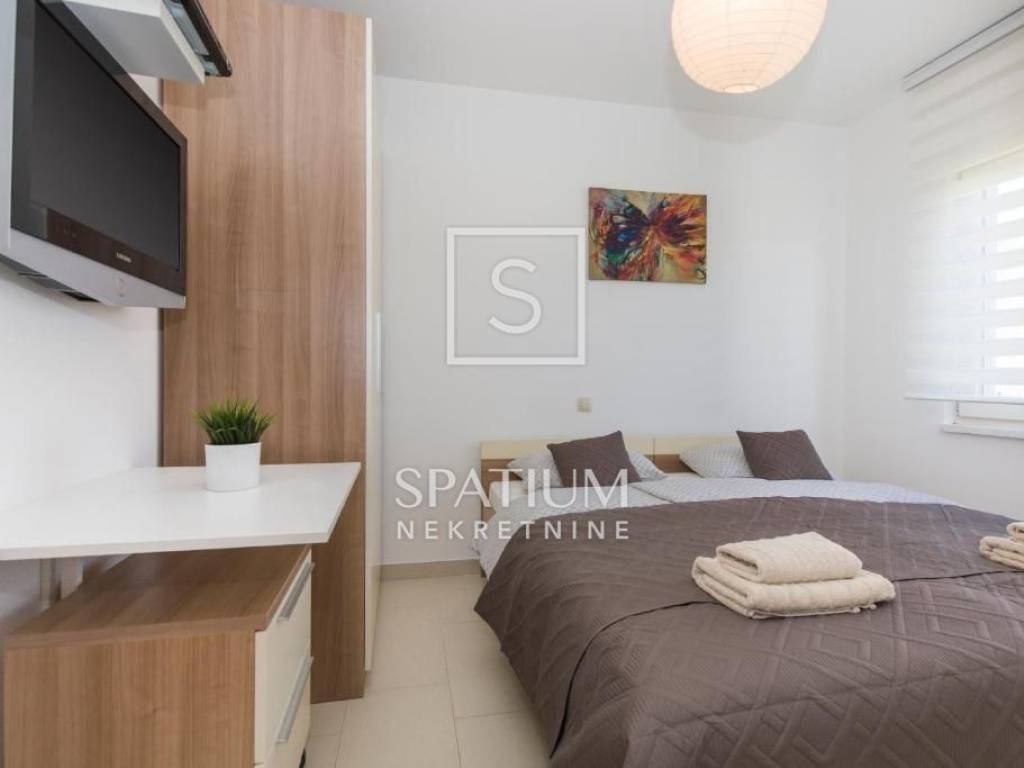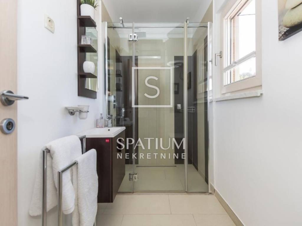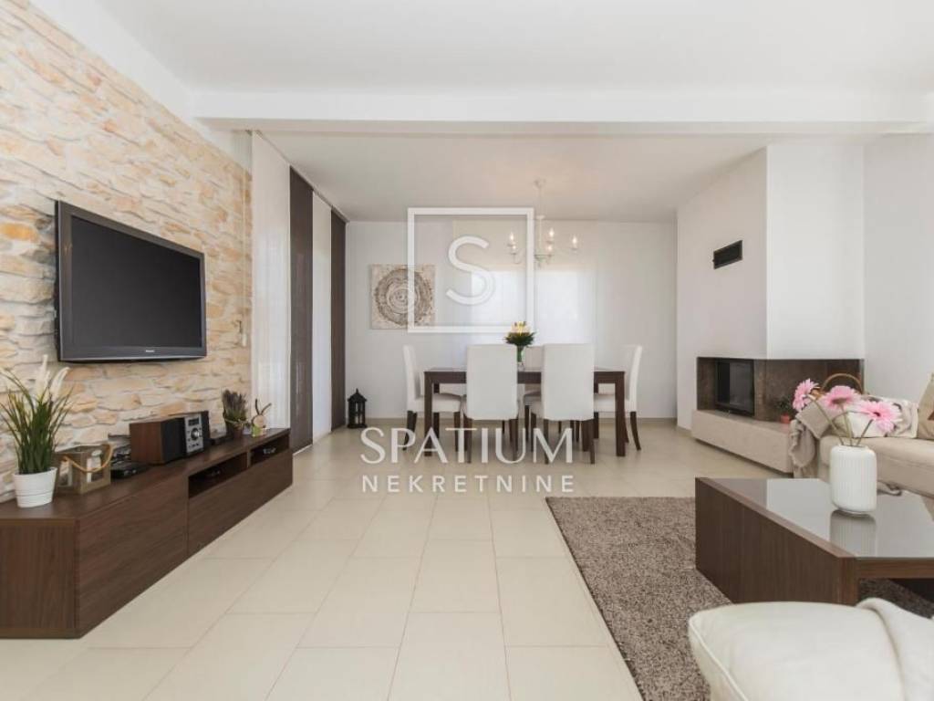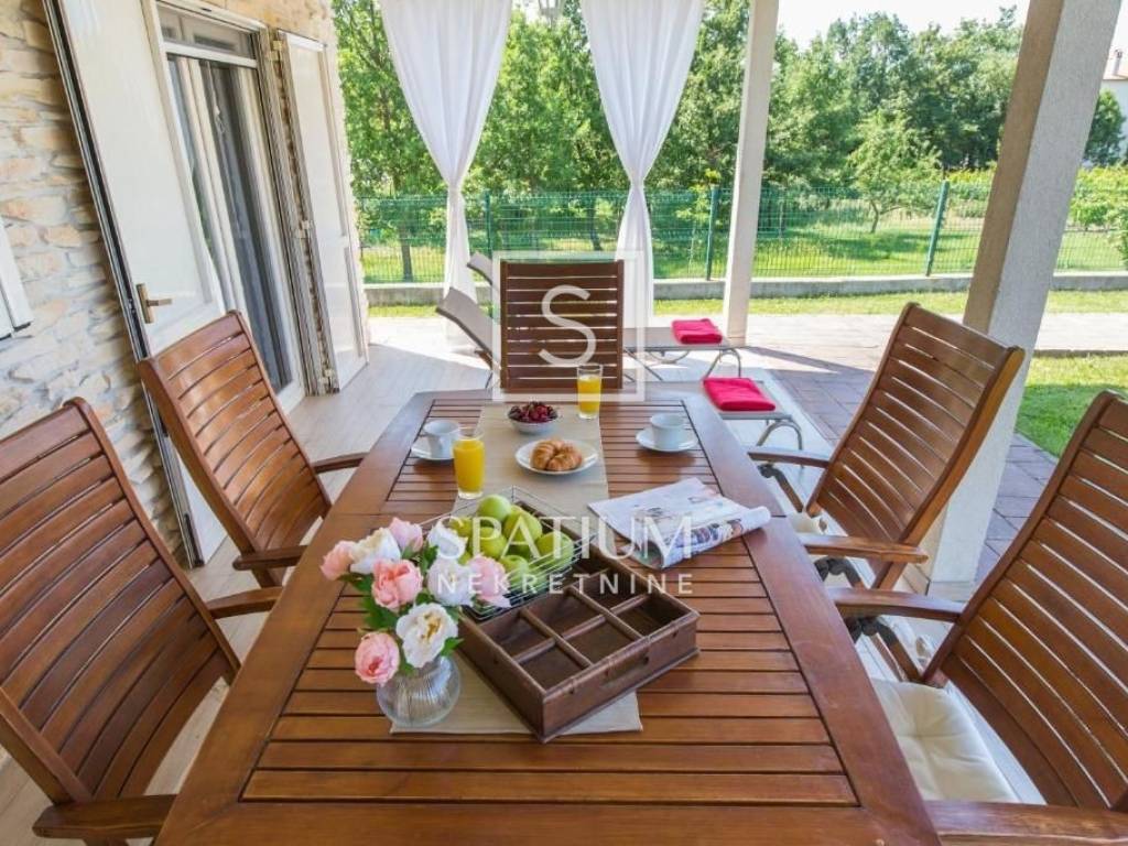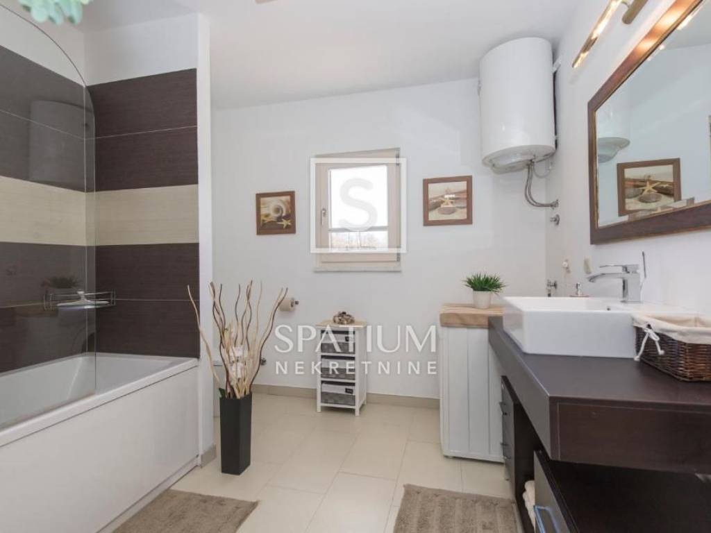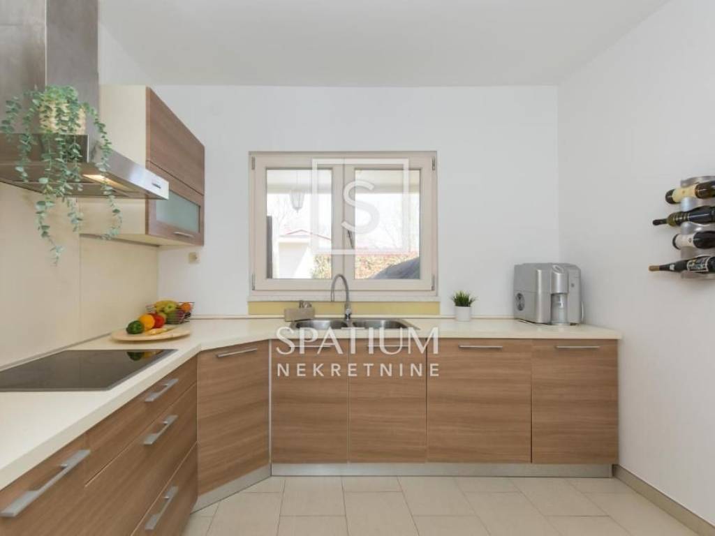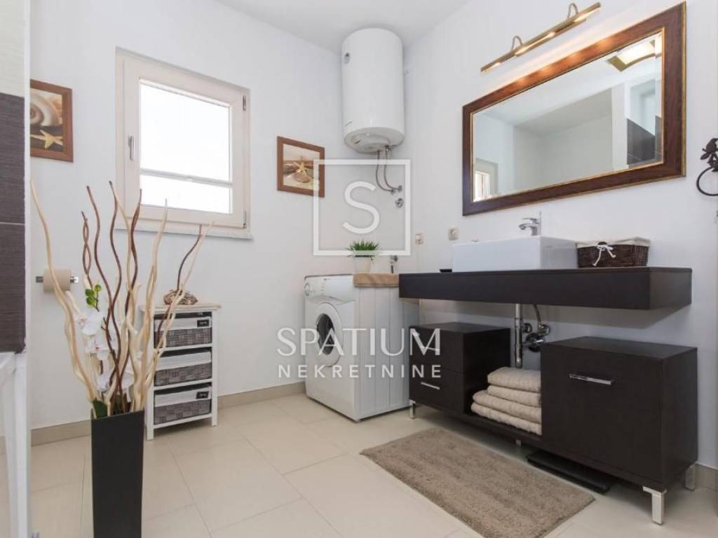 LABIN, we offer a beautiful single-storey house located on a 670 m² plot in a quiet and well-maintained settlement, just a few minutes' drive from the city center. This functionally designed prefabricated house offers a comfortable and practical living space ideal for a family or those looking for a peaceful oasis close to urban amenities.