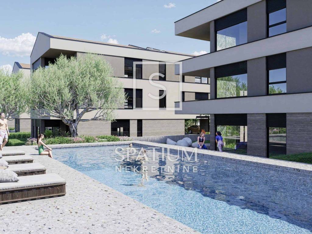 FAŽANA, a modern ground floor apartment in a new residential building is on offer, providing the perfect combination of comfort and functionality. The apartment stands out with high-quality features such as underfloor heating in the bathroom, top-quality ceramic tiles, and first-class bathroom equipment from renowned manufacturers. French-type PVC windows with shutters and mosquito nets ensure brightness and energy efficiency, while security doors with excellent sound insulation guarantee peace and safety. Each ground floor apartment comes with its own garden, as well as a parking space with preparation for an electric car charger. The investor also offers buyers the possibility to choose floor finishes, several models of ceramics and bathroom fittings, as well as additional customizations and upgrades according to their preferences. This property is ideal for those seeking high-quality construction, practicality, and privacy in close proximity to the sea.