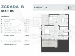FAŽANA, a modern apartment on the second floor of a new residential building is on offer, providing the perfect combination of comfort and functionality. The apartment stands out with high-quality features such as underfloor heating in the bathroom, top-quality ceramic tiles, and first-class bathroom equipment from renowned manufacturers. French-type PVC windows with shutters and mosquito nets ensure brightness and energy efficiency, while security doors with excellent sound insulation guarantee peace and safety. Apartments on the upper floors come with a storage room located on the ground floor of the building, as well as a parking space with preparation for an electric car charger. A special advantage of the apartments on the second floor is the better view and greater privacy, which makes them particularly attractive. The investor also offers buyers the possibility to choose floor finishes, several models of ceramics and bathroom fittings, as well as additional customizations and upgrades according to their preferences. This property is ideal for those seeking high-quality construction, practicality, and living in close proximity to the sea.