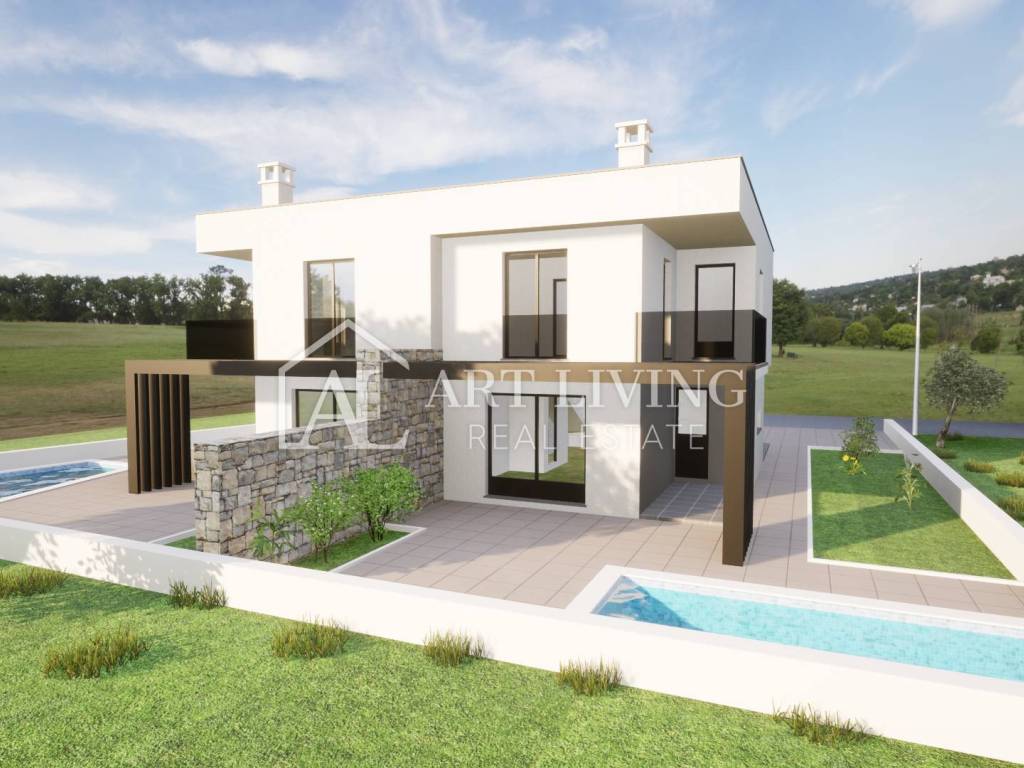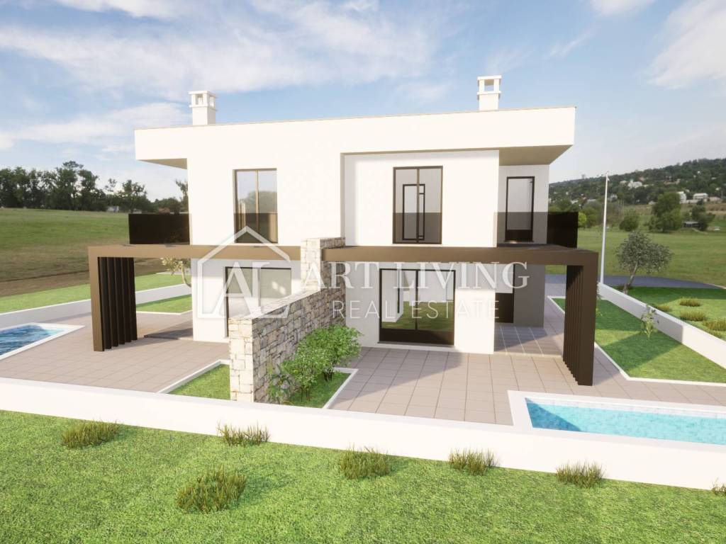 A semi-detached villa with a swimming pool in a new building of modern architecture is for sale, 3,500 m from the center of Umag and the sea with a view of the surrounding area and landscape.