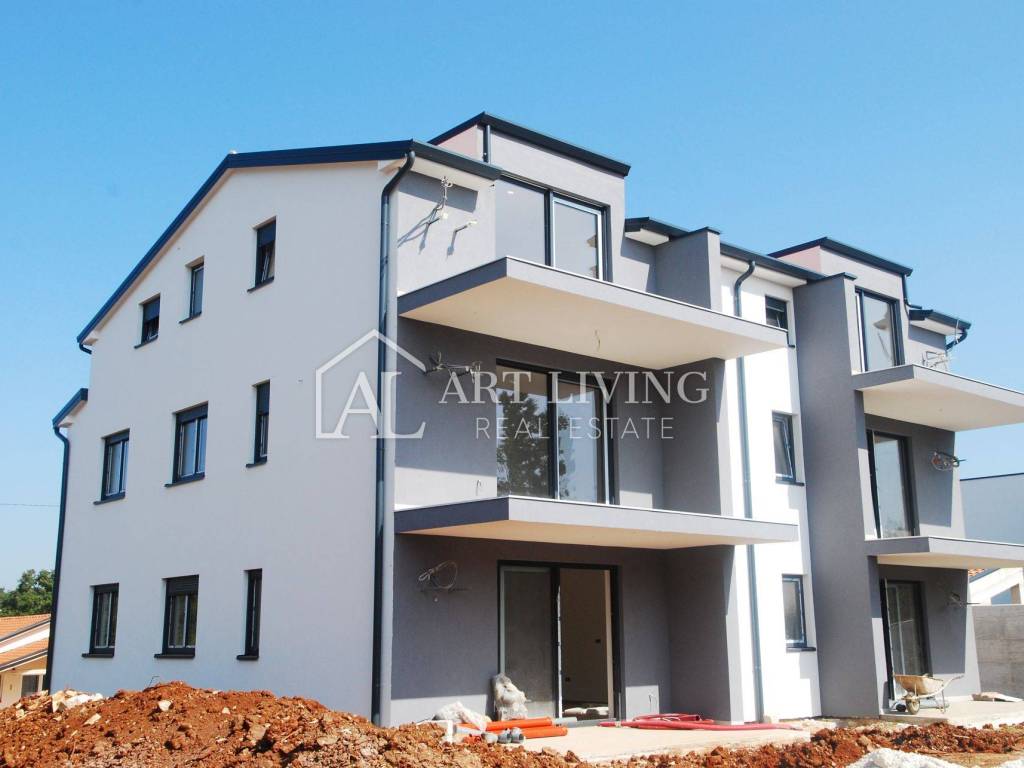 A modern apartment in a new building is for sale on the first floor, located in an attractive and peaceful area, just 8 km from the town of Poreč and the sea.