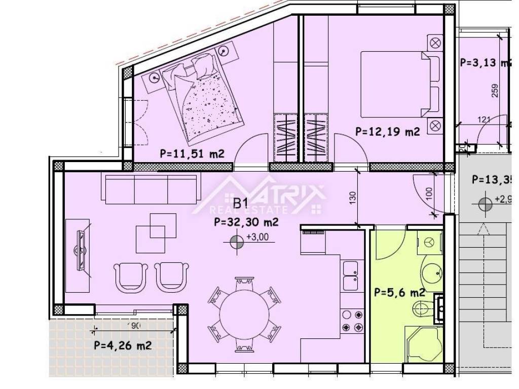 The building is constructed using high-quality materials, ensuring durability and energy efficiency. The apartment comes with one parking space, with the option to purchase an additional space if more parking is needed.
