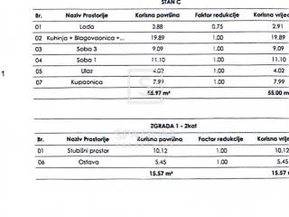 The apartment has a total net area of 55 m² and consists of: