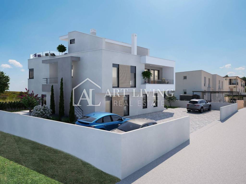 Modern apartment for sale in a new building in an attractive location 300 m from the sea and beaches, only 3.5 km from the city of Umag, 2 km from the golf course and 9 km from the border crossing with Slovenia.